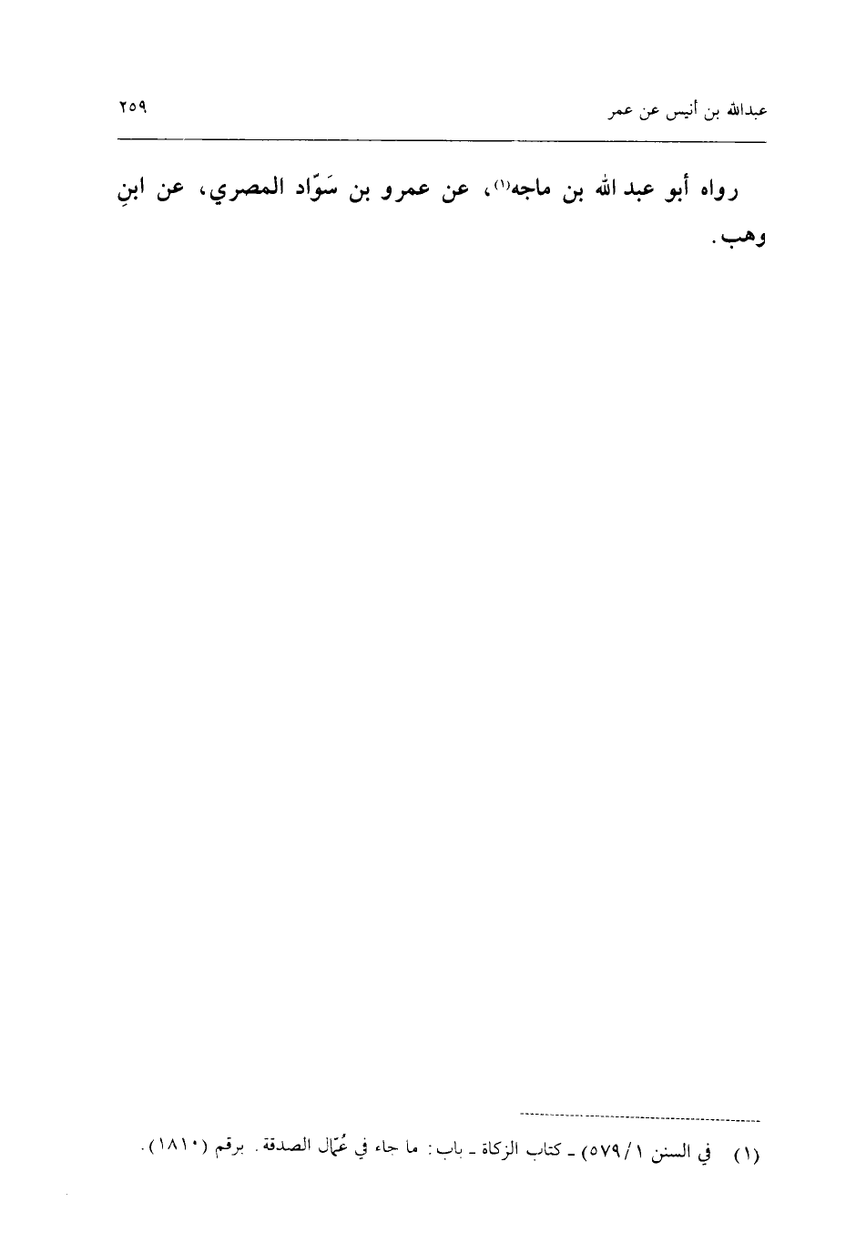 رَوَاهُ أَبُو عبد الله بْنُ مَاجَهْ عَنْ عَمْرِو بْنِ سَوَّادٍ الْمِصْرِيِّ عَن ابْن وهب (فِي إِسْنَاده لين)