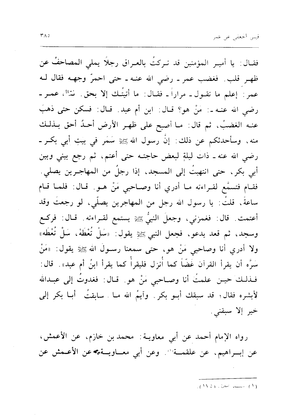 رَوَاهُ الإِمَامُ أَحْمَدُ عَنْ أَبِي مُعَاوِيَةَ مُحَمَّدِ بْنِ خَازِمٍ عَنِ الأَعْمَشِ عَنْ إِبْرَاهِيمَ عَنْ عَلْقَمَةَ وَعَنْ أَبِي مُعَاوِيَةَ عَنِ الْأَعْمَش عَن