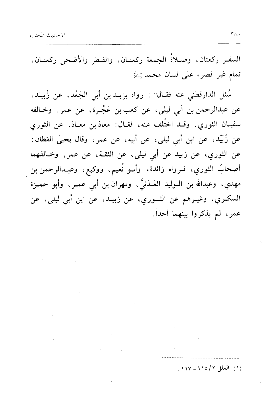 سُئِلَ الدَّارَقُطْنِيُّ عَنْهُ فَقَالَ رَوَاهُ يَزِيدُ بْنُ أَبِي الْجَعْدِ عَنْ زبيد عَن عبد الرَّحْمَن بْنِ أَبِي لَيْلَى عَنْ كَعْبِ بْنِ عُجْرَةَ عَنْ عُمَرَ وَخَالَفَهُ سُفْيَانُ الثَّوْرِيُّ وَقَدِ اخْتَلَفَ عَنْهُ فَقَالَ مُعَاذُ بْنُ مُعَاذٍ عَنِ الثَّوْرِيِّ عَنْ زُبَيْدٍ عَنِ ابْنِ أَبِي لَيْلَى عَنْ أَبِيهِ عَنْ عُمَرَ وَقَالَ يَحْيَى الْقَطَّانُ عَنِ الثَّوْرِيِّ عَنْ زُبَيْدٍ عَنْ أَبِي لَيْلَى عَنِ الثِّقَةِ عَنْ عُمَرَ وَخَالَفَهُمَا أَصْحَابُ الثَّوْرِيِّ فَرَوَاهُ زَائِدَة وَأَبُو نعيم ووكيع وَعبد الرَّحْمَن بن مهْدي وَعبد الله بْنُ الْوَلِيدِ الْعَدَنِيُّ وَمِهْرَانُ بْنُ أَبِي عُمَرَ وَأَبُو حَمْزَةَ السُّكَّرِيُّ وَغَيْرُهُمْ عَنِ الثَّوْرِيِّ عَنْ زُبَيْدٍ عَنِ ابْنِ أَبِي لَيْلَى عَنْ عُمَرَ لم يذكرُوا بَينهمَا أحدا (إِسْنَاده صَحِيح)