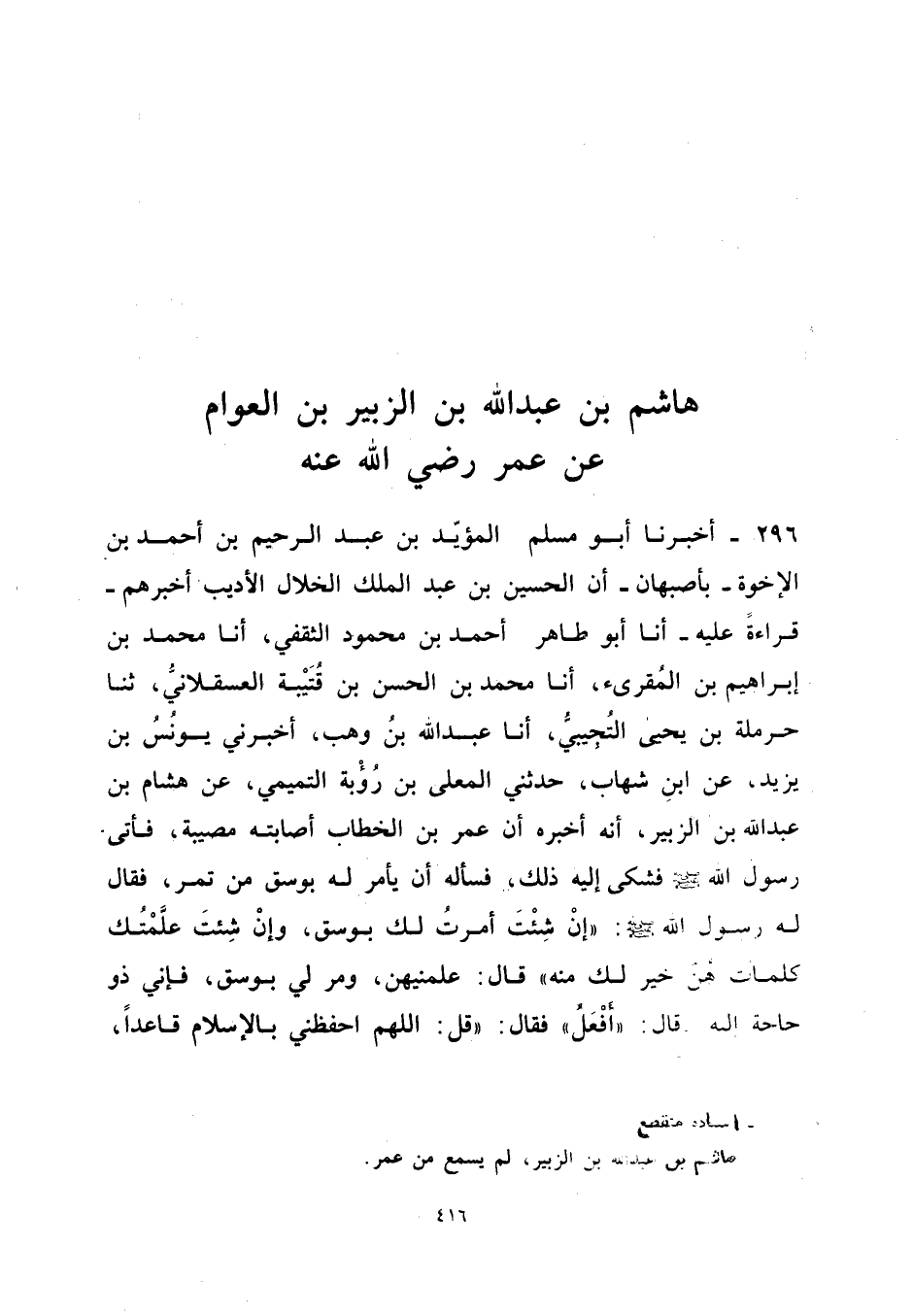 هَاشم بن عبد الله بْنُ الزُّبَيْرِ بْنِ الْعَوَّامِ عَنْ عُمَرَ رَضِيَ اللَّهُ عَنْهُ
