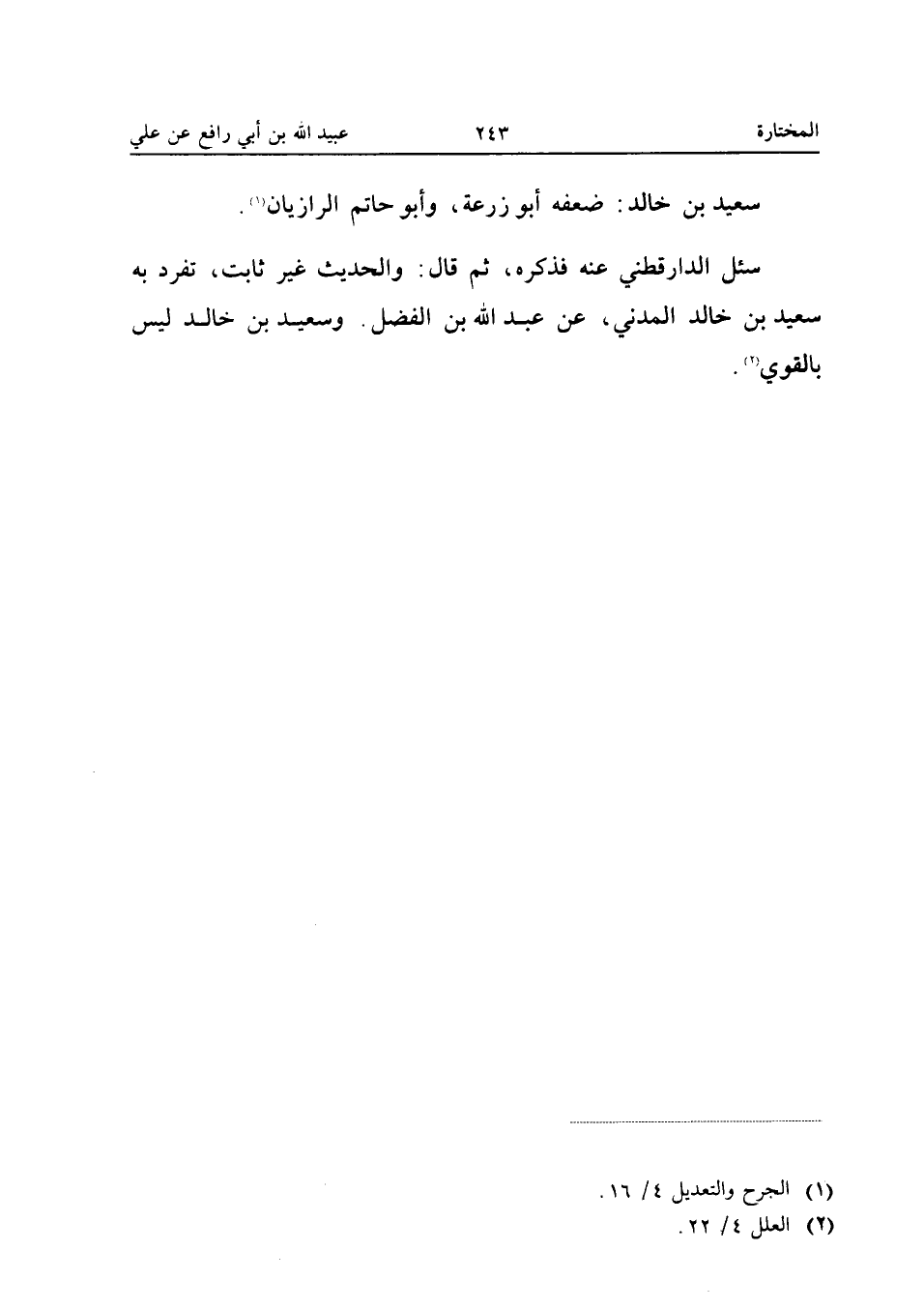 سَعِيدُ بْنُ خَالِدٍ ضَعَّفَهُ أَبُو زُرْعَةَ وَأَبُو حَاتِمٍ الرَّازِيَّانِ سُئِلَ الدَّارَقُطْنِيُّ عَنْهُ فَذَكَرَهُ ثُمَّ قَالَ وَالْحَدِيثُ غَيْرُ ثَابِتٍ تَفَرَّدَ بِهِ سَعِيدُ بن خَالِد الْمدنِي عَن عبد الله بْنِ الْفَضْلِ وَسَعِيدُ بْنُ خَالِدٍ لَيْسَ بِالْقَوِيِّ (إِسْنَاده ضَعِيف)