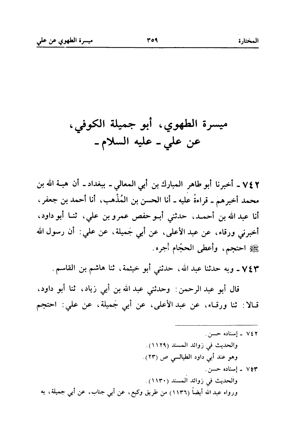 مَيْسَرَةُ الطُّهَوِيُّ أَبُو جَمِيلَةَ الْكُوفِيُّ عَنْ عَلِيٍّ عَلَيْهِ السَّلامُ