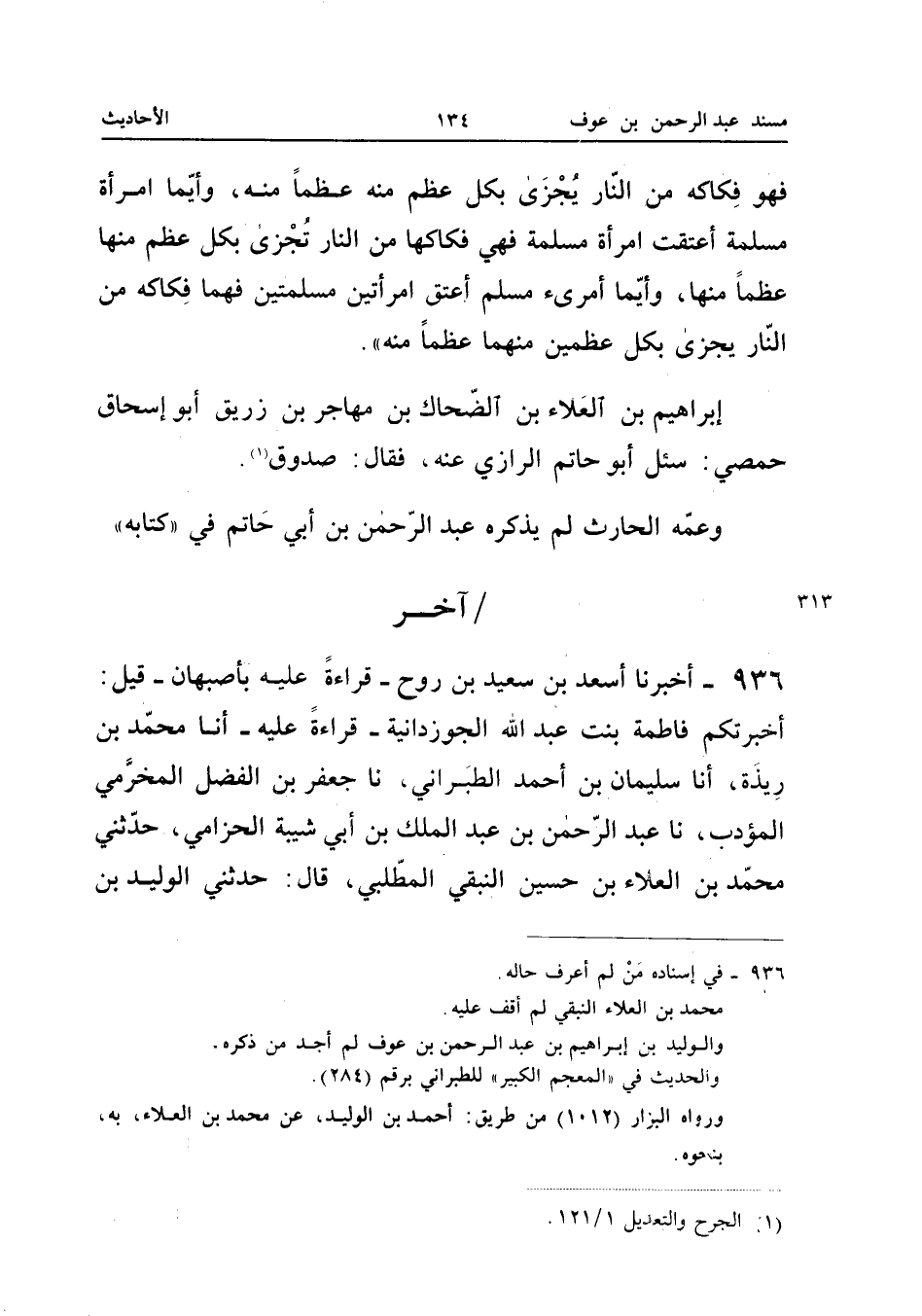 فَهُوَ فِكَاكُهُ مِنَ النَّارِ يُجْزَى بِكُلِّ عَظْمٍ مِنْهُ عَظْمًا مِنْهُ وَأَيُّمَا امْرَأَةٍ مُسْلِمَةٍ أَعْتَقَتِ امْرَأَةً مُسْلِمَةً فَهِيَ فِكَاكُهَا مِنَ النَّارِ تُجْزَى بِكُلِّ عَظْمٍ مِنْهَا عَظْمًا مِنْهَا وَأَيُّمَا امْرِئٍ مُسْلِمٍ أَعْتَقَ امْرَأَتَيْنِ مُسْلِمَتَيْنِ فَهُمَا فِكَاكُهُ مِنَ النَّارِ يُجْزَى بِكُلِّ عَظْمَيْنِ مِنْهُمَا عَظْمًا مِنْهُ إِبْرَاهِيمُ بْنُ الْعَلاءِ بْنِ الضَّحَّاكِ بْنِ مُهَاجِرِ بْنِ زُرَيْقٍ أَبُو إِسْحَاقَ حِمْصِيٌّ سُئِلَ أَبُو حَاتِمٍ الرَّازِيُّ عَنْهُ فَقَالَ صَدُوقٌ وَعَمُّهُ الْحَارِثُ لم يذكرهُ عبد الرَّحْمَن بن أبي حَاتِم فِي كِتَابه (إِسْنَاده حسن)