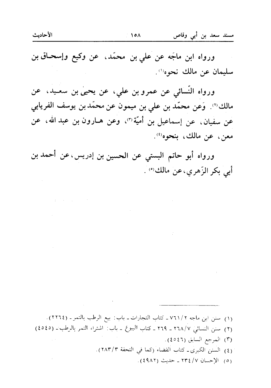 وَرَوَاهُ ابْنُ مَاجَهْ عَنْ عَلِيِّ بْنِ مُحَمَّدٍ عَنْ وَكِيعٍ وَإِسْحَاقَ بْنِ سُلَيْمَانَ عَنْ مَالِكٍ نَحْوَهُ وَرَوَاهُ النَّسَائِيُّ عَنْ عَمْرِو بْنِ عَلِيٍّ عَنْ يَحْيَى بْنِ سَعِيدٍ عَنْ مَالِكٍ وَعَنْ مُحَمَّدِ بْنِ عَلِيِّ بْنِ مَيْمُونٍ عَنْ مُحَمَّدِ بْنِ يُوسُفَ الْفِرْيَابِيِّ عَنْ سُفْيَانَ عَنْ إِسْمَاعِيلَ بن أُميَّة وَعَن هَارُون بن عبد الله عَنْ مَعْنٍ عَنْ مَالِكٍ بِنَحْوِهِ وَرَوَاهُ أَبُو حَاتِمٍ الْبُسْتِيُّ عَنِ الْحُسَيْنِ بْنِ إِدْرِيسَ عَنْ أَحْمَدَ بْنِ أَبِي بَكْرٍ الزُّهْرِيِّ عَنْ مَالِكٍ (إِسْنَاده صَحِيح)