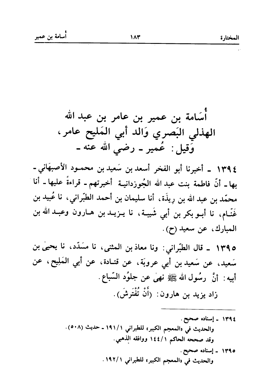 1395 - قَالَ الطَّبَرَانِيُّ وَنا مُعَاذُ بْنُ الْمُثَنَّى نَا مُسَدَّدٌ نَا يَحْيَى بْنُ سَعِيدٍ عَنْ سَعِيدِ بْنِ أَبِي عَرُوبَةَ عَنْ قَتَادَةَ عَنْ أَبِي الْمَلِيحِ عَنْ أَبِيهِ أَنَّ رَسُولَ اللَّهِ صَلَّى اللَّهُ عَلَيْهِ وَسَلَّمَ نَهَى عَنْ جُلُودِ السِّبَاعِ زَاد يزِيد بن هَارُون (أَن تفترش)