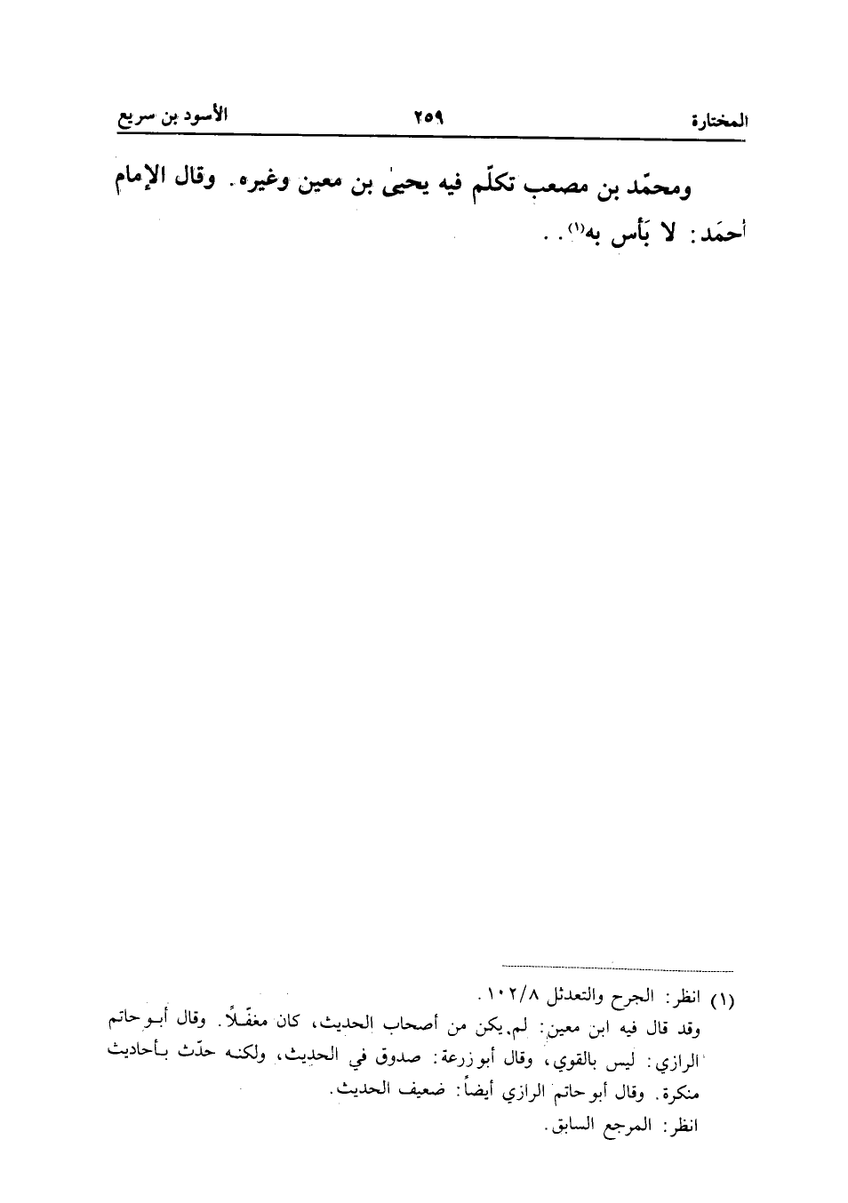 وَمُحَمَّدُ بْنُ مُصْعَبٍ تَكَلَّمَ فِيهِ يَحْيَى بْنُ مَعِينٍ وَغَيْرُهُ وَقَالَ الإِمَامُ أَحْمَدُ لَا بَأْسَ بِهِ