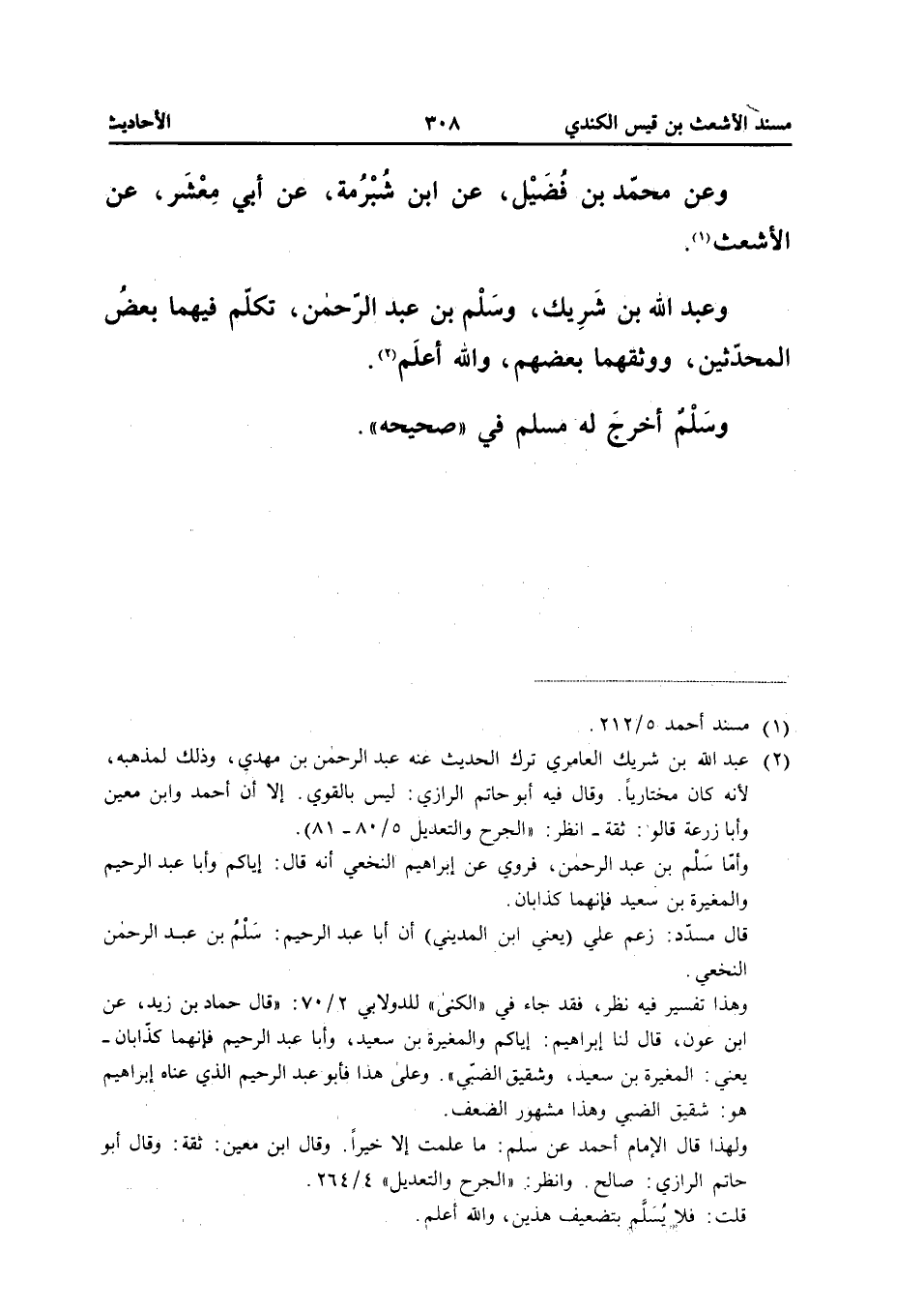 وَعَنْ مُحَمَّدِ بْنِ فُضَيْلٍ عَنِ ابْنِ شُبْرُمَةَ عَنْ أَبِي مَعْشَرٍ عَنِ الأَشْعَثِ وَعَبْدُ اللَّهِ بْنُ شَرِيكٍ وَسَلْمُ بْنُ عَبْدِ الرَّحْمَنِ تَكَلَّمَ فِيهِمَا بَعْضُ الْمُحَدِّثِينَ وَوَثَّقَهُمَا بَعْضُهُمْ وَاللَّهُ أَعْلَمُ وَسَلْمٌ أَخْرَجَ لَهُ مُسْلِمٌ فِي صَحِيحِهِ