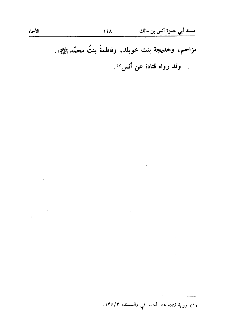مُزَاحِمٍ وَخَدِيجَةُ بِنْتُ خُوَيْلِدٍ وَفَاطِمَةُ بِنْتُ مُحَمَّدٍ صَلَّى اللَّهُ عَلَيْهِ وَسَلَّمَ وَقَدْ رَوَاهُ قَتَادَةُ عَن أنس