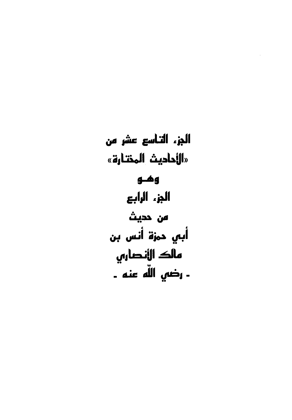 الْجُزْءُ التَّاسِعَ عَشَرَ مِنَ الأَحَادِيثَ الْمُخْتَارَةِ وَهُوَ الْجُزْءُ الرَّابِعُ مِنْ حَدِيثِ أَبِي حَمْزَةَ أَنَسِ بْنِ مَالِكٍ الأَنْصَارِيِّ رَضِيَ اللَّهُ عَنْهُ