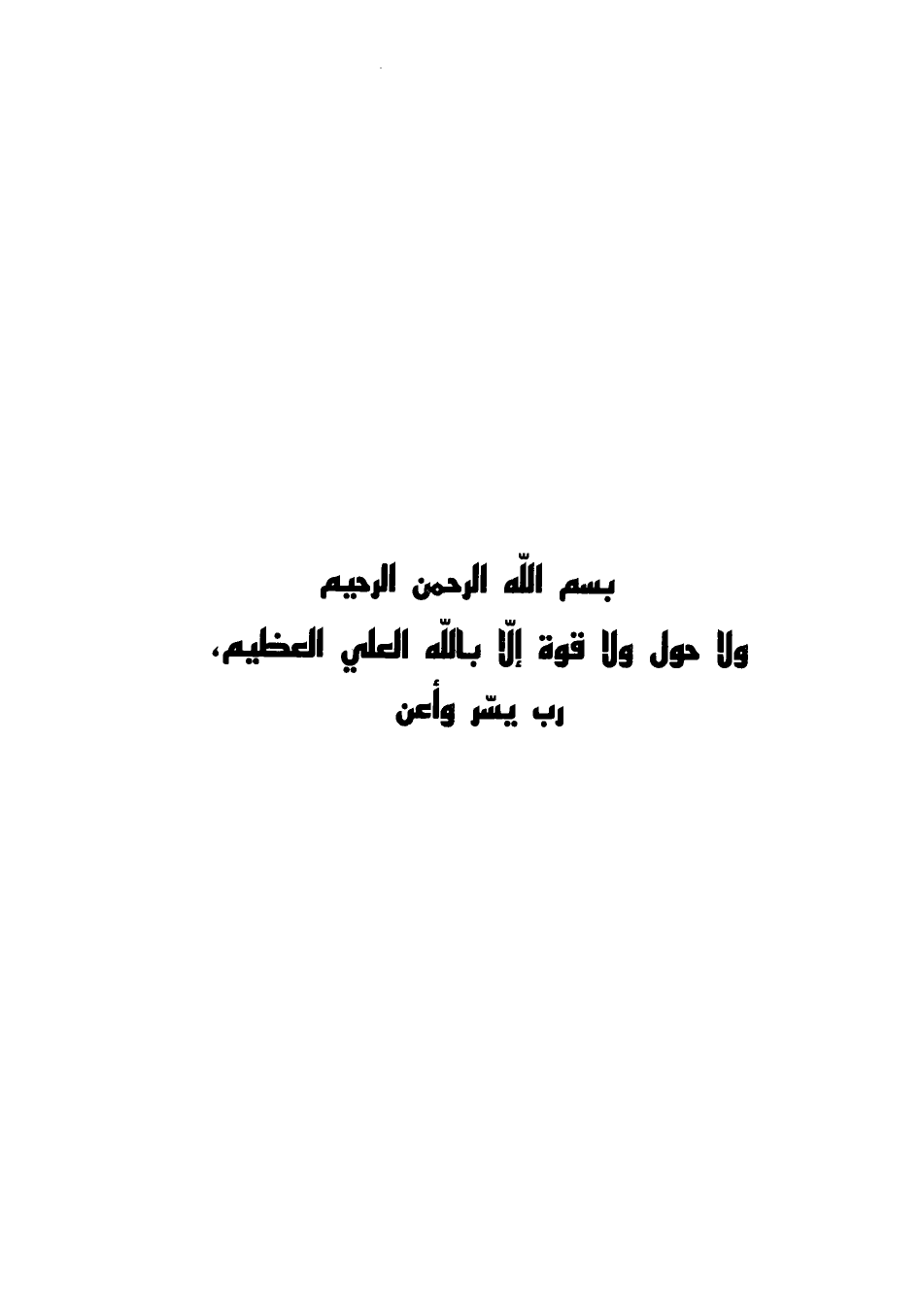 بِسْمِ اللَّهِ الرَّحْمَنِ الرَّحِيمِ وَلا حَوْلَ وَلا قُوَّةَ إِلا بِاللَّهِ الْعَلِيِّ الْعَظِيمِ رَبِّ يَسِّرْ وأعن