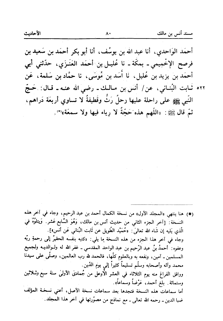 عَلَى رَاحِلَةٍ عَلَيْهَا رَحْلٌ رَثٌّ وَقَطِيفَةٌ لَا تُسَاوِي أَرْبَعَةَ دَرَاهِمَ ثُمَّ قَالَ صَلَّى اللَّهُ عَلَيْهِ وَسَلَّمَ اللَّهُمَّ هَذِهِ حَجَّةٌ لَا رِيَاءَ فِيهَا وَلا سُمْعَةَ