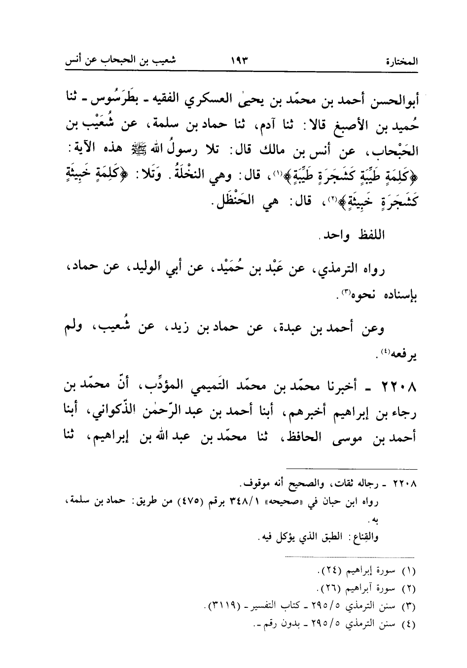 2208 - أَخْبَرَنَا مُحَمَّدُ بْنُ مُحَمَّدٍ التَّمِيمِيُّ الْمُؤَدِّبُ أَنَّ مُحَمَّدَ بْنَ رَجَاءِ بْنِ إِبْرَاهِيمَ أَخْبَرَهُمْ أبنا أَحْمَدُ بْنُ عَبْدِ الرَّحْمَنِ الذَّكْوَانِيُّ أبنا أَحْمَدُ بْنَ مُوسَى الْحَافِظَ ثَنَا مُحَمَّدُ بْنُ عَبْدِ اللَّهِ بْنِ إِبْرَاهِيمَ ثَنَا مُحَمَّدُ بْنُ غَالِبِ بْنِ حَرْبٍ ثَنَا عَلِيُّ بْنُ عُثْمَانَ اللاحِقِيُّ ثَنَا حَمَّادُ بْنُ سَلَمَةَ قثنا شُعَيْبُ بْنُ الَحَبْحَابِ وَقَتَادَةُ عَنْ أَنَسِ بْنِ مَالِكٍ أَنَّ النَّبِي