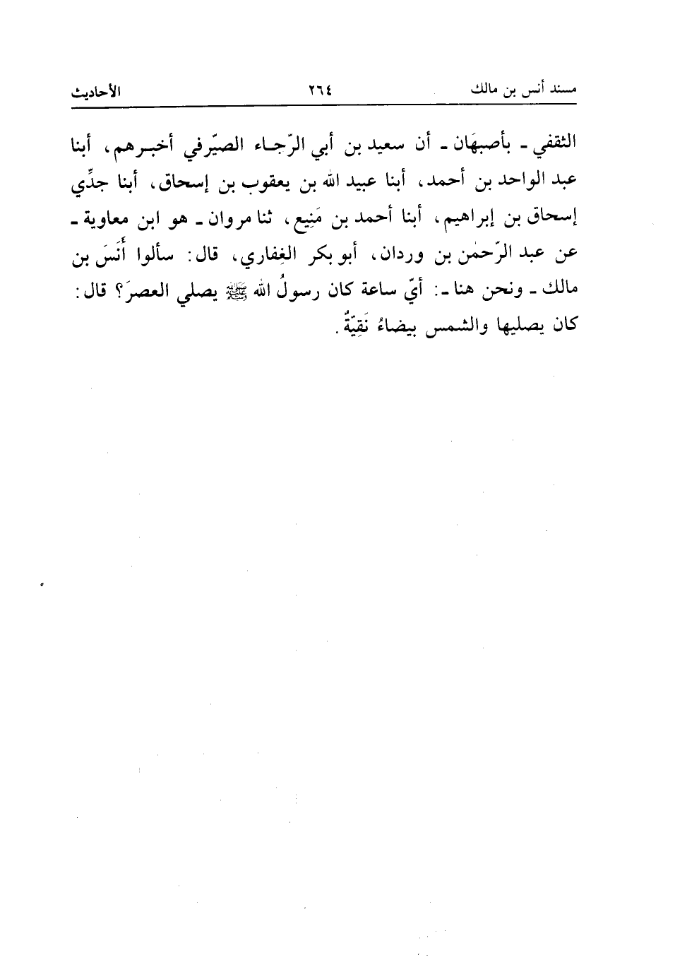 صَلَّى اللَّهُ عَلَيْهِ وَسَلَّمَ يُصَلِّي الْعَصْرَ قَالَ كَانَ يُصَلِّيهَا وَالشَّمْسُ بَيْضَاءُ نَقِيَّةٌ