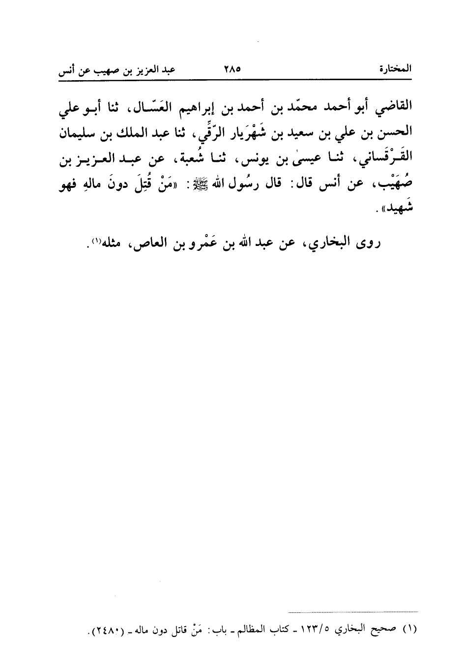صَلَّى اللَّهُ عَلَيْهِ وَسَلَّمَ مَنْ قُتِلَ دُونَ مَالِهِ فَهُوَ شَهِيدٌ