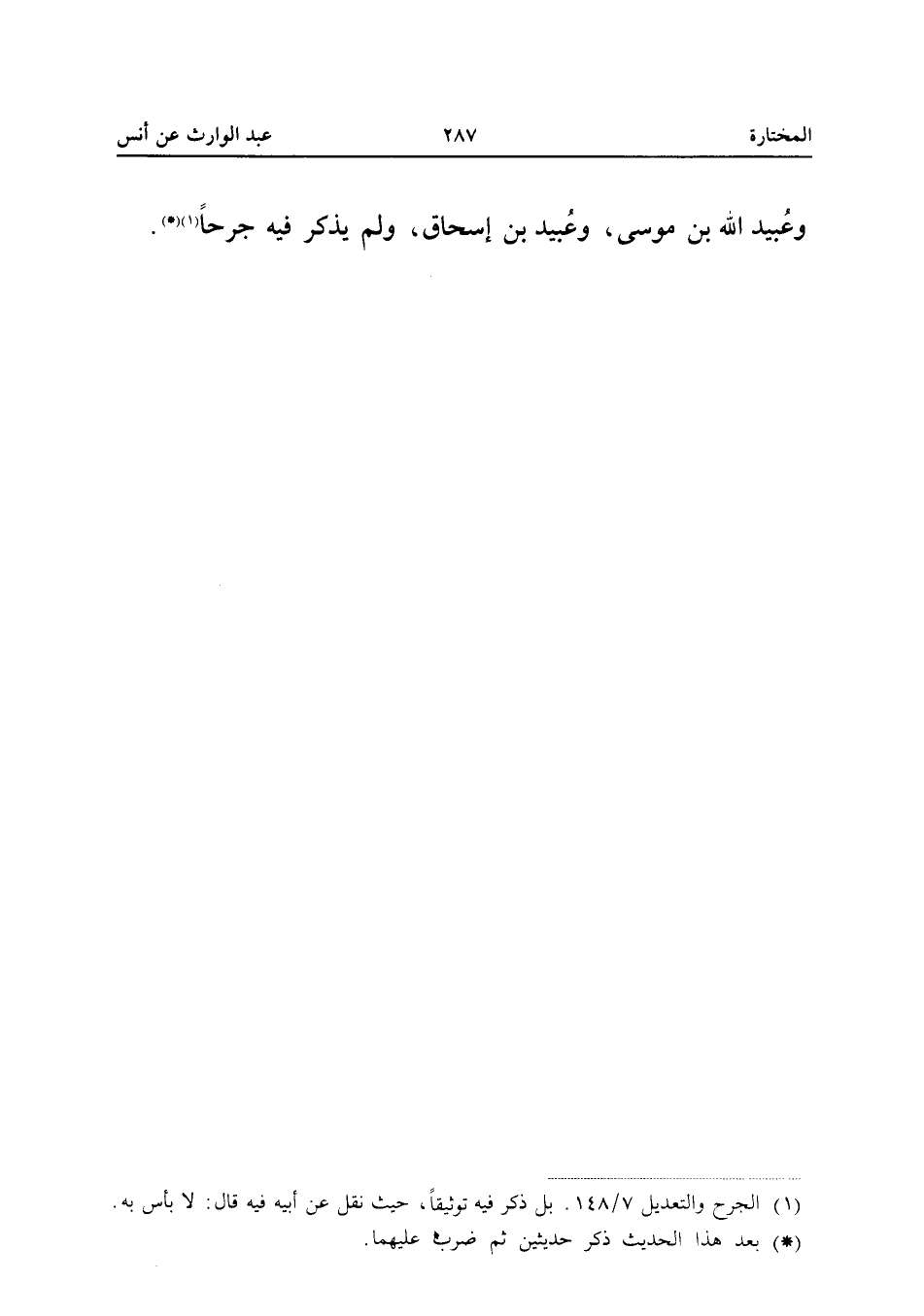 وَعُبَيْدُ اللَّهِ بْنُ مُوسَى وَعُبَيْدُ بْنُ إِسْحَاقَ لم يَذْكُرْ فِيهِ جَرْحًا