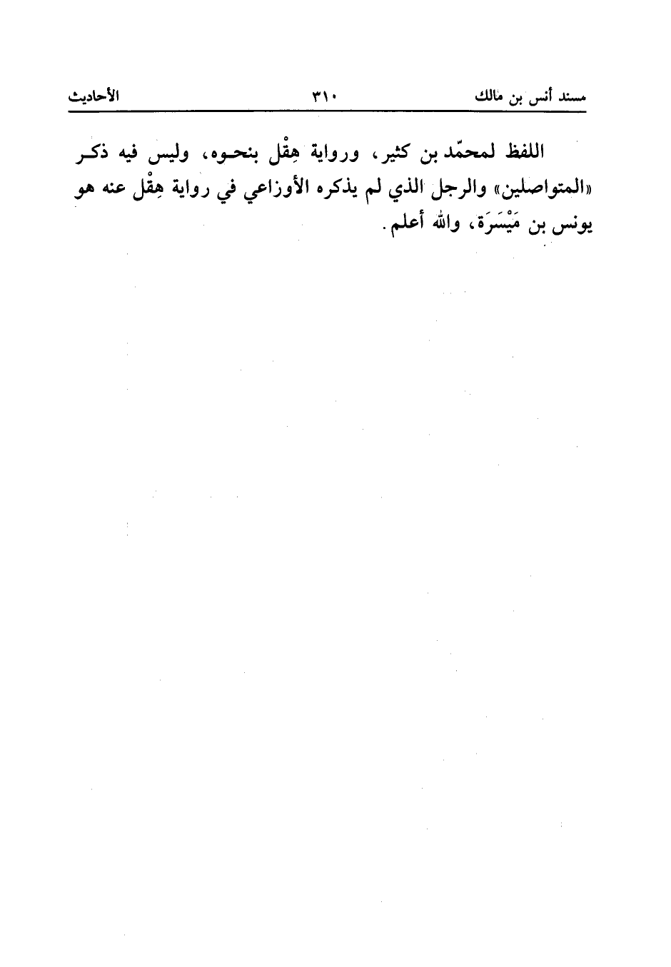 اللَّفْظُ لِمُحَمَّدِ بْنِ كَثِيرٍ وَرِوَايَةُ هِقْلٍ بِنَحْوِهِ وَلَيْسَ فِيِه ذِكْرُ (الْمُتَوَاصِلِينَ) وَالرَّجُلُ الَّذِي لَمْ يَذْكَرْهُ الأَوْزَاعِيُّ فِي رِوَايَةِ هِقْلٍ عَنْهُ هُوَ يُونُسُ بْنُ مَيْسَرَةَ وَاللَّهُ أَعْلَمُ