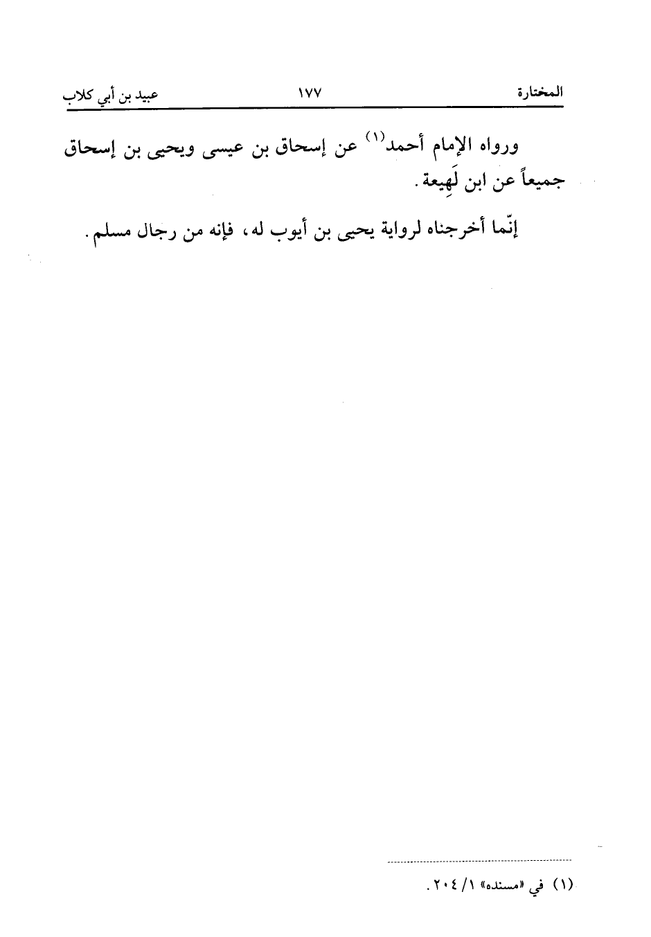 وَرَوَاهُ الإِمَامُ أَحْمَدُ عَنْ إِسْحَاقَ بْنِ عِيسَى وَيَحْيَى بْنِ إِسْحَاقَ جَمِيعًا عَنِ ابْنِ لَهِيعَةَ إِنَّمَا أَخْرَجْنَاهُ لِرِوَايَةِ يَحْيَى بْنِ أَيُّوبَ لَهُ فَإِنَّهُ من رجال مُسلم