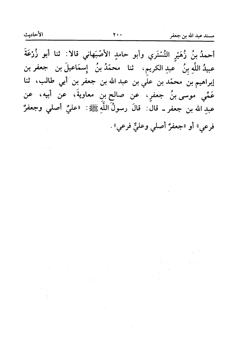 صَلَّى اللَّهُ عَلَيْهِ وَسَلَّمَ عَلِيٌّ أَصْلِي وَجَعْفَرٌ فَرْعِي أَوْ جَعْفَرٌ أَصْلِي وَعَلِيٌّ فَرْعِي