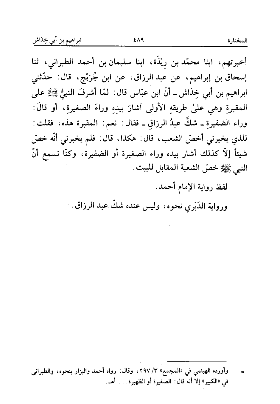 لَفْظُ رِوَايَةِ الإِمَامِ أَحْمَدَ وَرِوَايَةُ الدَّبَرِيِّ نَحْوَهُ وَلَيْسَ عِنْدَهُ شَكَّ عَبْدُ الرَّزَّاقِ