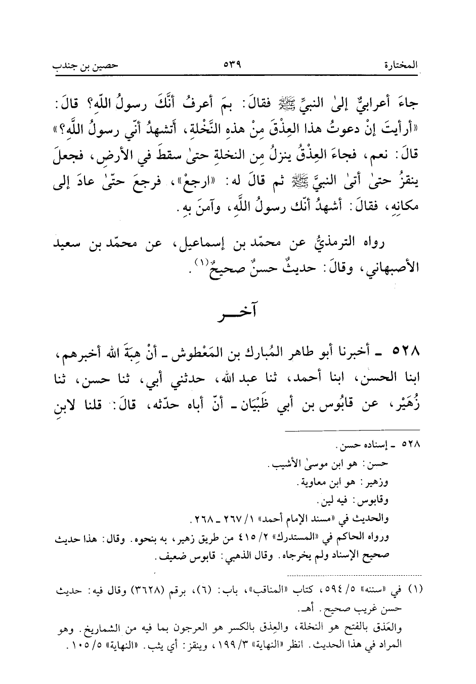 528 - أَخْبَرَنَا أَبُو طَاهِرٍ الْمُبَارَكُ بْنُ الْمَعْطُوشِ أَنَّ هِبَةَ اللَّهِ أَخْبَرَهُمْ أبنا الْحَسَنُ أبنا أَحْمَدُ ثَنَا عَبْدُ اللَّهِ حَدَّثَنِي أَبِي ثَنَا حَسَنٌ ثَنَا زُهَيْرٌ عَنْ قَابُوسِ بْنِ أَبِي ظَبْيَانَ أَنَّ أَبَاهُ حَدَّثَهُ قَالَ قُلْنَا لابْنِ عَبَّاسٍ أَرَأَيْتَ قَوْلَ اللَّهِ تَبَارَكَ وَتَعَالَى {مَا جَعَلَ اللَّهُ لِرَجُلٍ من قلبين فِي جَوْفه} مَا عَنَى بِذَلِكَ قَالَ قَامَ نَبِيُّ اللَّهِ ص