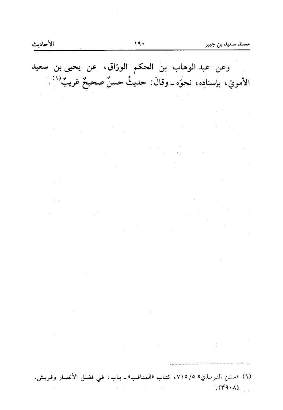 وَعَنْ عَبْدِ الْوَهَّابِ بْنِ الْحَكَمِ الْوَرَّاقِ عَنْ يَحْيَى بْنِ سَعِيدٍ الأُمَوِيِّ بِإِسْنَادِهِ نَحْوَهُ وَقَالَ حَدِيث حسن صَحِيح غَرِيب
