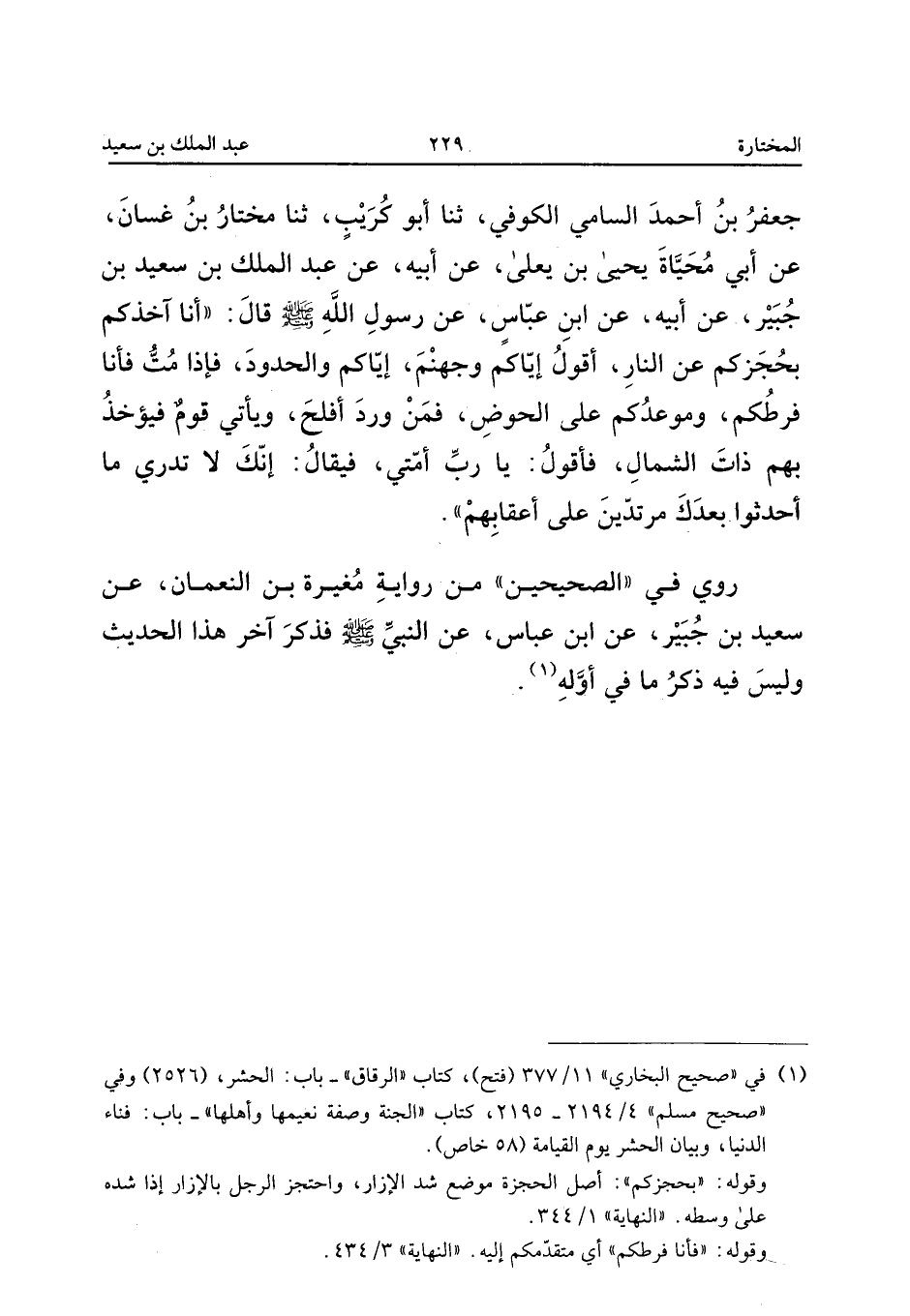 رَوَى فِي الصَّحِيحَيْنِ مِنْ رِوَايَةِ مُغِيرَةَ بْنِ النُّعْمَانِ عَنْ سَعِيدِ بْنِ جُبَيْرٍ عَنِ ابْنِ عَبَّاسٍ عَنِ النَّبِيِّ صَلَّى اللَّهُ عَلَيْهِ وَسَلَّمَ فَذَكَرَ آخِرَ هَذَا الْحَدِيثِ وَلَيْسَ فِيهِ ذِكْرُ مَا فِي أَوله