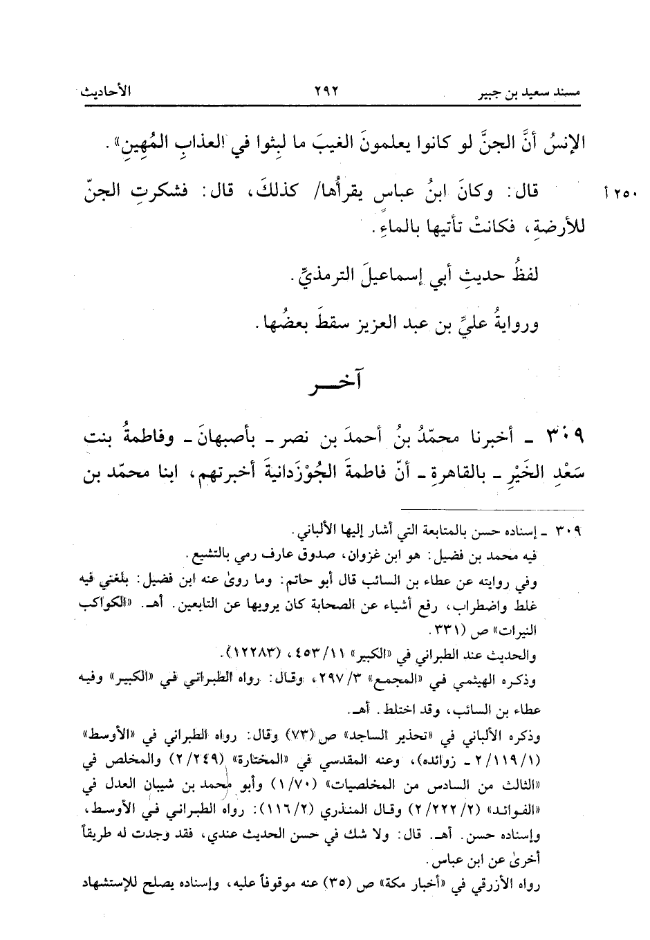 309 - أَخْبَرَنَا مُحَمَّدُ بْنُ أَحْمَدَ بْنِ نَصْرٍ بِأَصْبَهَانَ وَفَاطِمَةُ بِنْتُ سَعْدِ الْخَيْرِ بِالْقَاهِرَةِ أَنَّ فَاطِمَةَ الْجَوْزَدَانِيَّةَ أَخْبَرَتْهُمْ أبنا مُحَمَّدُ بْنُ عَبْدِ اللَّهِ أبنا سُلَيْمَانُ بْنُ أَحْمَدَ الطَّبَرَانِيُّ ثَنَا مُحَمَّدُ بْنُ أَحْمَدَ بْنُ أَبِي خَيْثَمَةَ ثَنا عَبْدُ اللَّهِ بْنُ هَاشِمٍ الطُّوسِيُّ ثَنَا مُحَمَّدُ بْنُ فُضَيْلٍ عَنْ عَطَاءِ بْنِ السَّائِبِ عَنْ سَعِيدِ بْنِ جُبَيْرٍ عَنِ ابْنِ عَبَّاسٍ قَالَ قَالَ رَسُولُ اللَّهِ ص