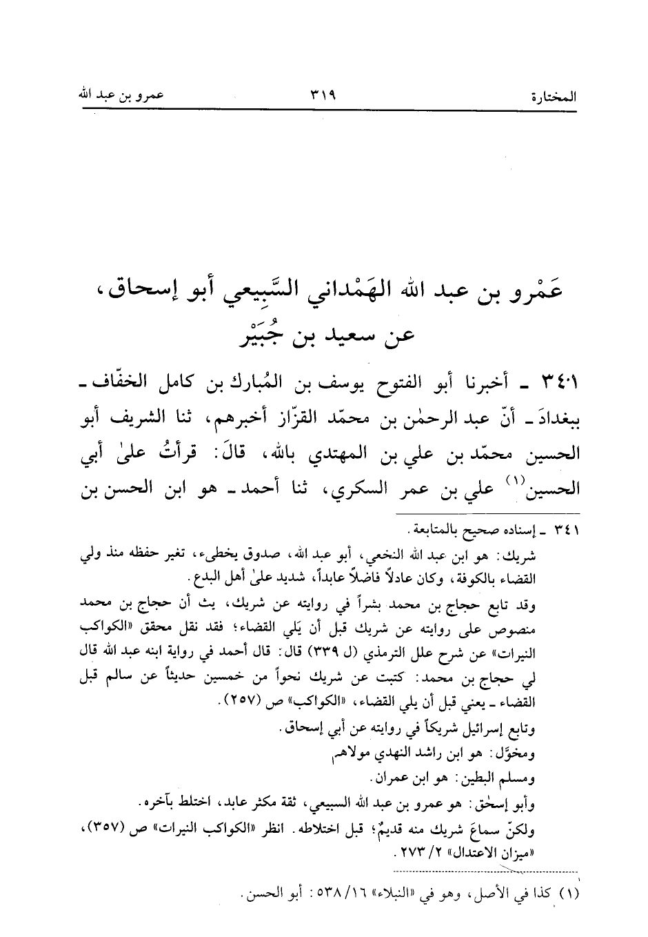 عَمْرُو بْنُ عَبْدِ اللَّهِ الْهَمْدَانِيُّ السَّبِيعِيُّ أَبُو إِسْحَاقَ عَنْ سَعِيدِ بْنِ جُبَيْرٍ