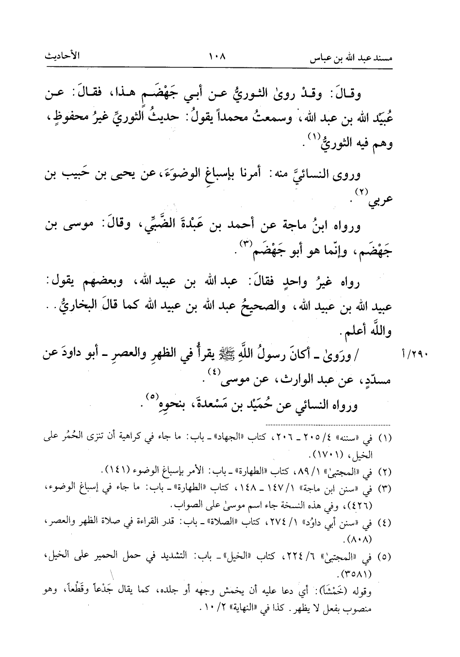 وَرَوَاهُ ابْنُ مَاجَهْ، عَنْ أَحْمَدَ بْنِ عَبْدَةَ الضَّبِّيِّ، وَقَالَ: مُوسَى بْنُ جَهْضَمٍ، وَإِنَّمَا هُوَ أَبُو جَهْضَمٍ.