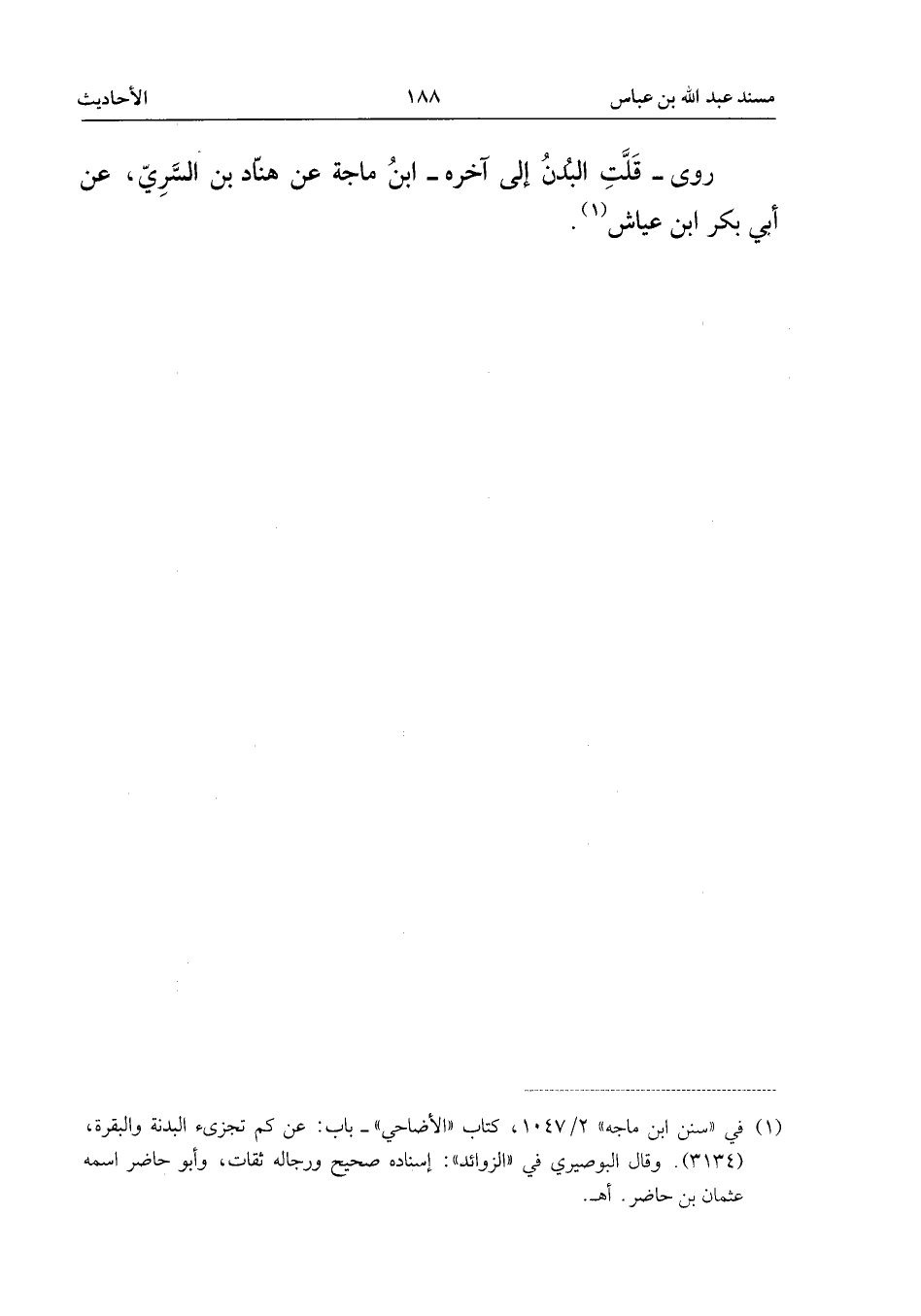 رَوَى، قَلَّتِ الْبُدْنُ إِلَى آخِرِهِ، ابْن مَاجَهْ عَنْ هَنَّادِ بْنِ السَّرِيِّ، عَنْ أَبِي بَكْرِ بْنِ عَيَّاشٍ