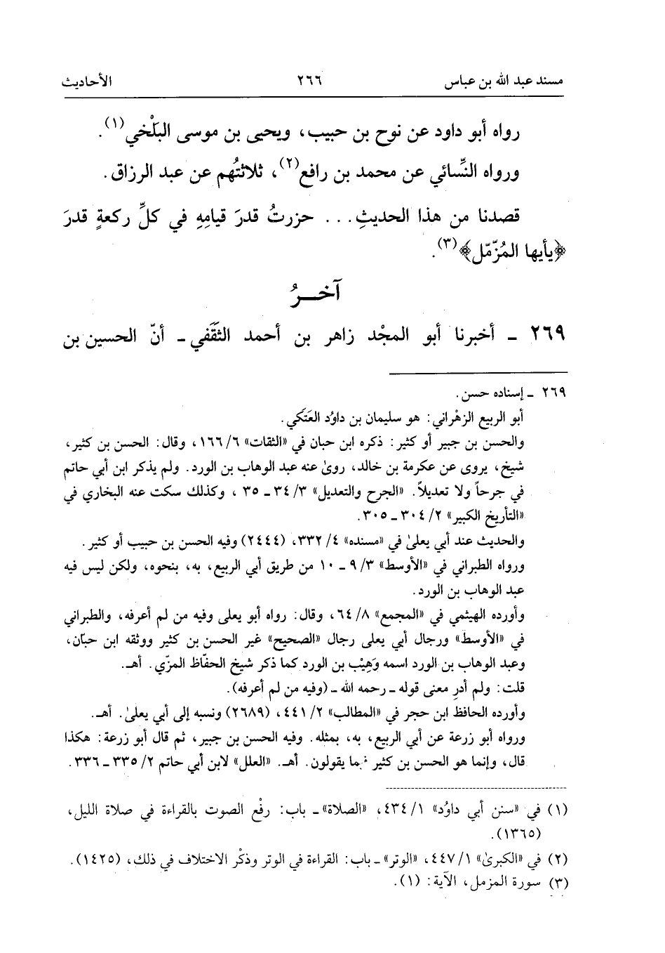 269 - أَخْبَرَنَا أَبُو الْمَجْدِ زَاهِرُ بْنُ أَحْمَدَ الثَّقَفِيُّ، أَنَّ الْحُسَيْنَ بْنَ