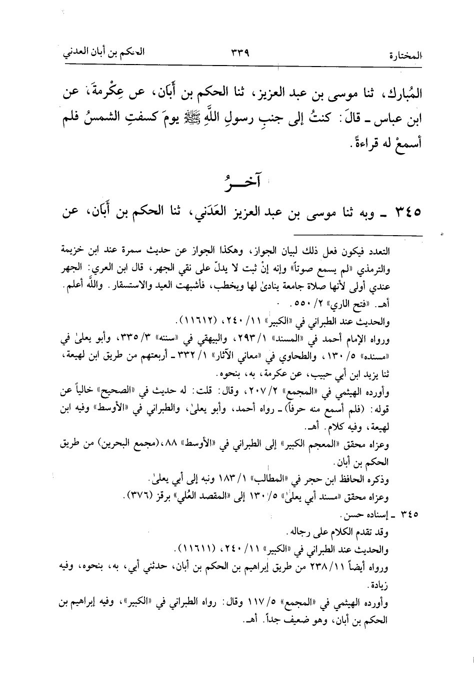 345 - وَبِهِ ثَنَا مُوسَى بْنُ عَبْدِ الْعَزِيزِ الْعَدَنِيُّ، ثَنَا الْحَكَمُ بْنُ أَبَانٍ، عَنْ