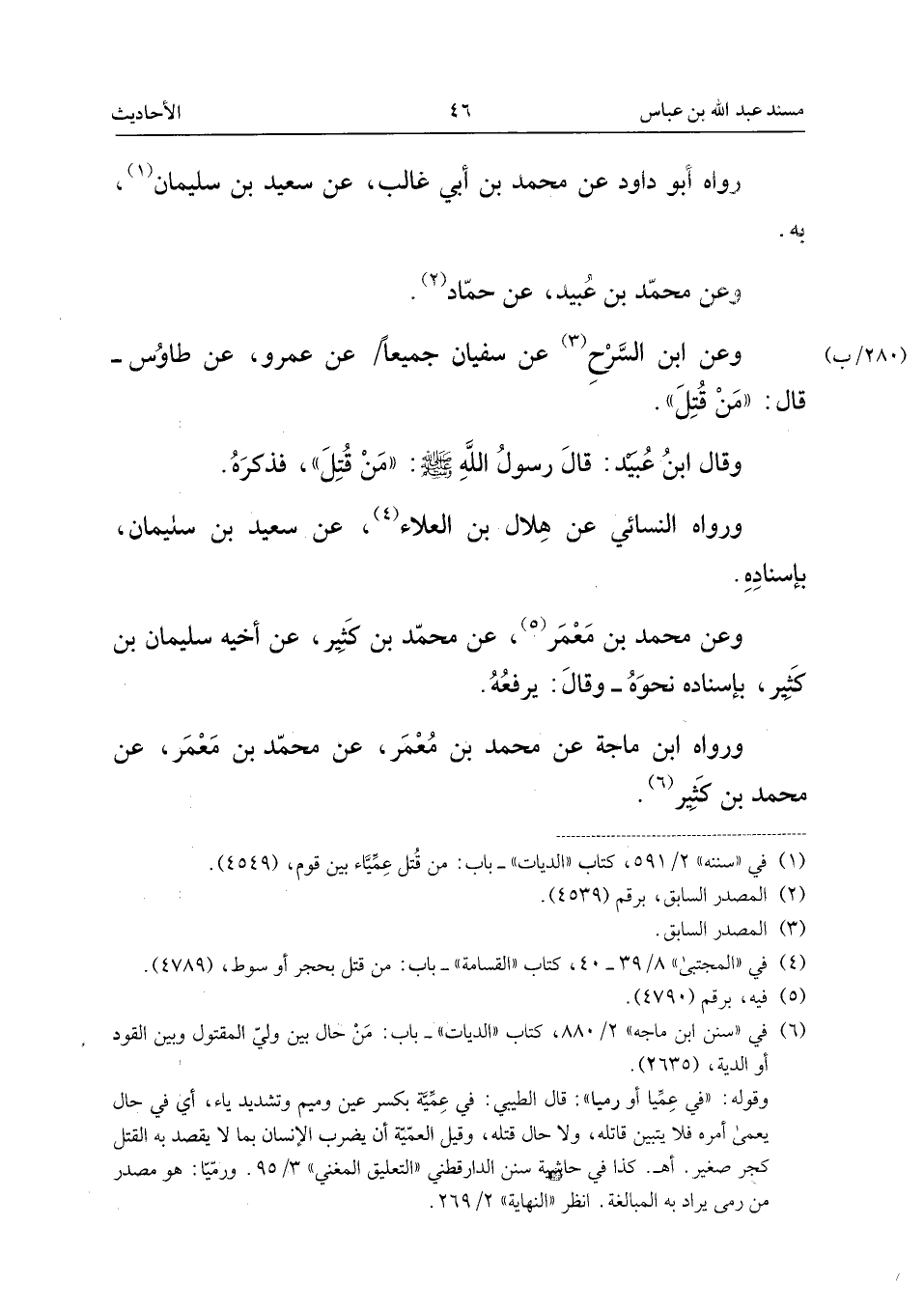 وَعَنِ ابْنِ السَّرْحِ، عَنْ سُفْيَانَ جَمِيعًا، عَنْ عَمْرٍو، عَنْ طَاوُسٍ، قَالَ: مَنْ قُتِلَ.