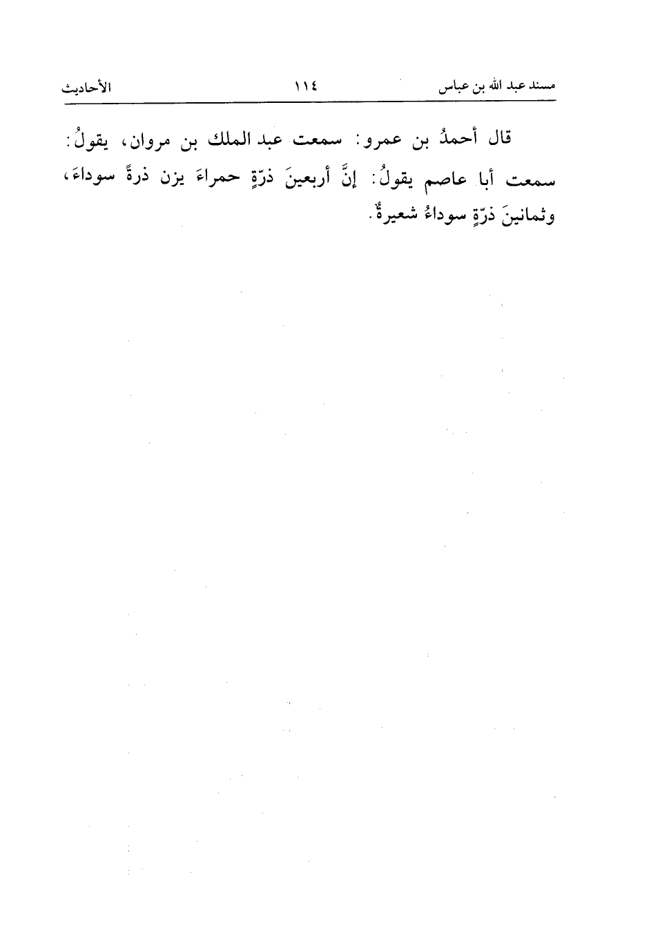 قَالَ أَحْمَدُ بْنُ عَمْرٍو: سَمِعْتُ عَبْدَ الْمَلِكِ بْنَ مَرْوَانَ، يَقُولُ: سَمِعْتُ أَبَا عَاصِمٍ، يَقُولُ: إِنَّ أَرْبَعِينَ ذَرَّةً حَمْرَاءَ يَزِنَّ ذَرَّةً سَوْدَاءَ، وَثَمَانِينَ ذَرَّةً سَوْدَاءَ شَعِيرَةٌ