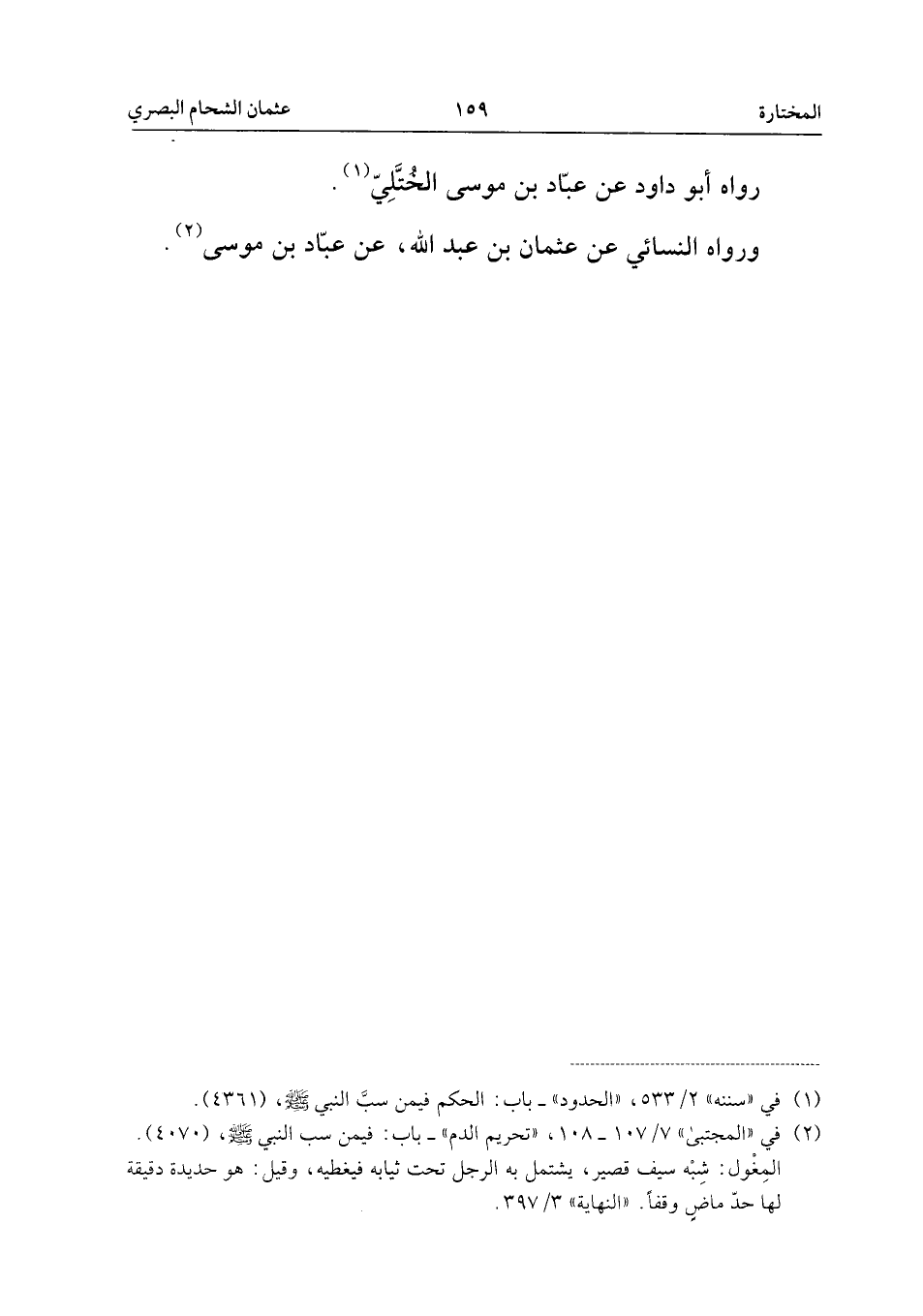 وَرَوَاهُ النَّسَائِيُّ، عَنْ عُثْمَانَ بْنِ عَبْدِ اللَّهِ، عَنْ عَبَّادِ بْنِ مُوسَى