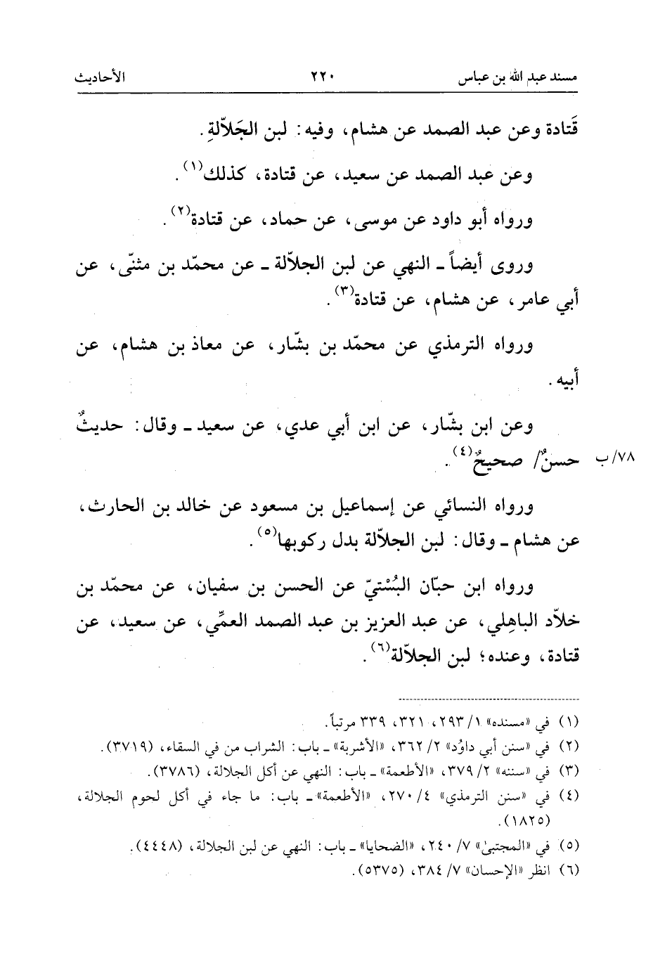 قَتَادَةَ، وَعَنْ عَبْدِ الصَّمَدِ، عَنْ هِشَامٍ، وَفِيهِ: لَبَنِ الْجَلَّالَةِ.