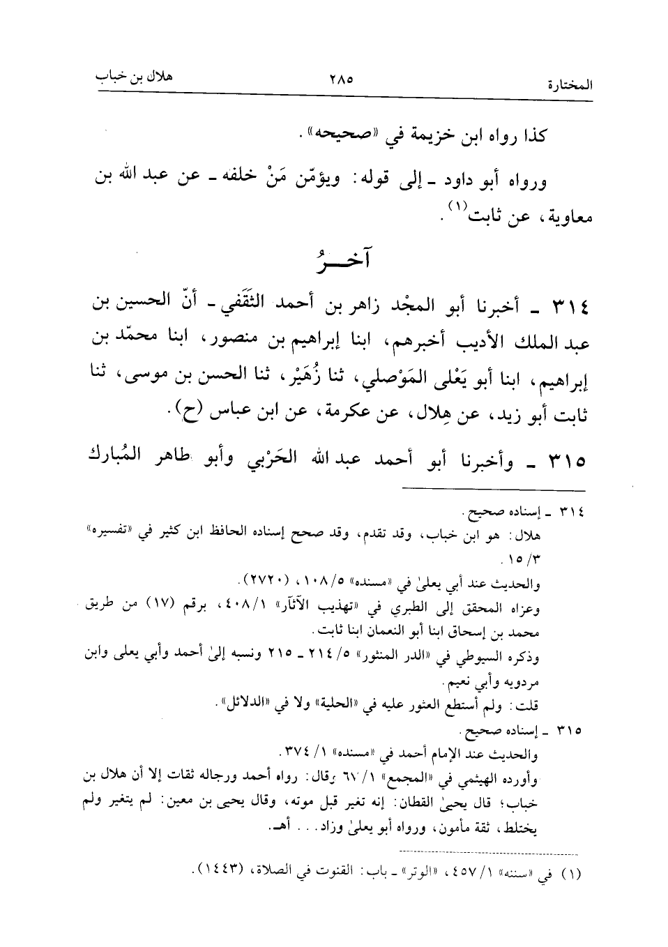 314 - أَخْبَرَنَا أَبُو الْمَجْدِ زَاهِرُ بْنُ أَحْمَدَ الثَّقَفِيُّ، أَنَّ الْحُسَيْنَ بْنَ عَبْدِ الْمَلِكِ الأَدِيبَ أَخْبَرَهُمْ، أنبا إِبْرَاهِيمُ بْنُ مَنْصُورٍ، أنبا مُحَمَّدُ بْنُ إِبْرَاهِيمَ، أنبا أَبُو يَعْلَى الْمَوْصِلِيُّ، ثَنَا زُهَيْرٌ، ثَنَا الْحَسَنُ بْنُ مُوسَى، ثَنَا ثَابِتٌ أَبُو زَيْدٍ، عَنْ هِلالٍ، عَنْ عِكْرِمَةَ، عَنِ ابْنِ عَبَّاسٍ. ح