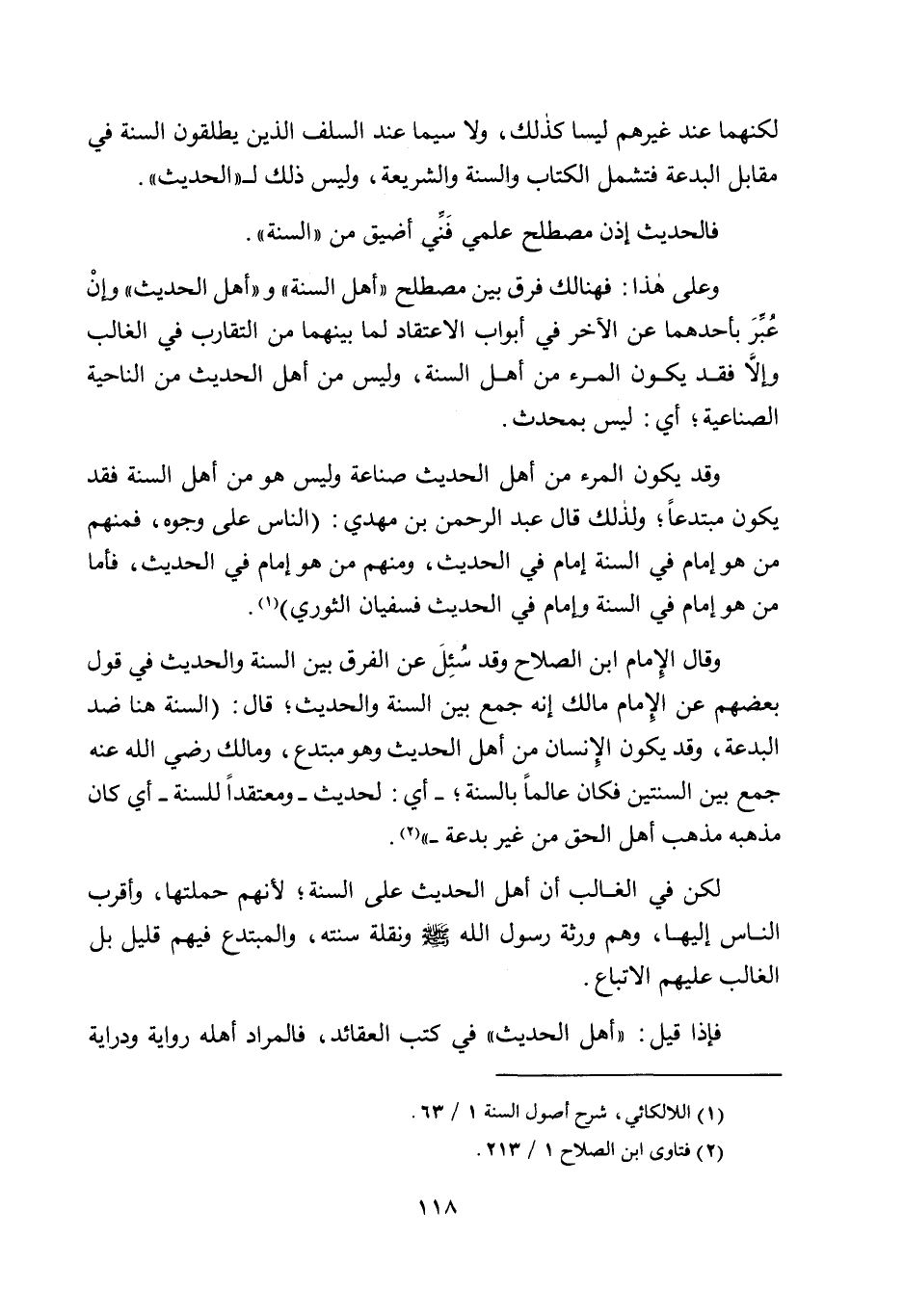 وقال الإمام ابن الصلاح: وقد سئل عن الفرق بين السنة والحديث في قول بعضهم عن الإمام مالك أنه جمع بين السنة والحديث؛ قال: "السنة هنا ضد البدعة، وقد يكون الإنسان من أهل الحديث وهو مبتدع، ومالك رضي الله عنه جمع بين السنتين؛ فكان عالمًا بالسنة؛ أي: لحديث - ومعتقدًا للسنة- أي كان مذهبه مذهب أهل الحق من غير بدعة"2.