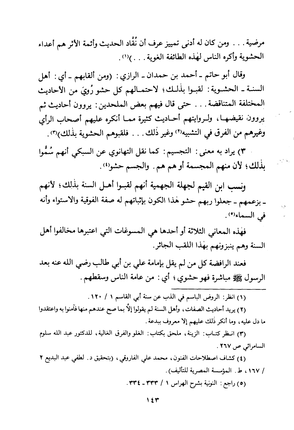 3- يراد به معنى: التجسيم: كما نقل التهانوي عن السبكي أنهم سموا بذلك؛ لأن منهم المجسمة أو هم هم. والجسم حشو4.