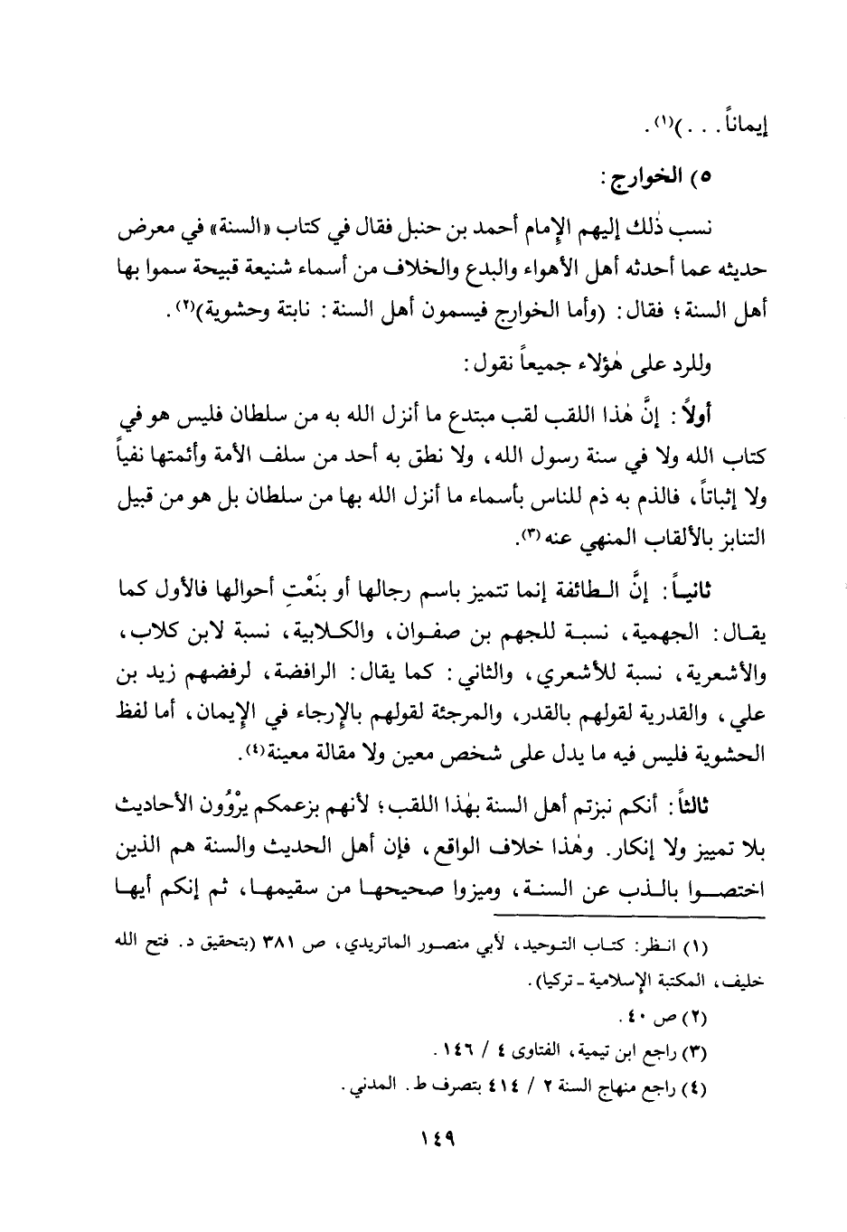 3 راجع ابن تيمية، الفتاوى 4/ 146.