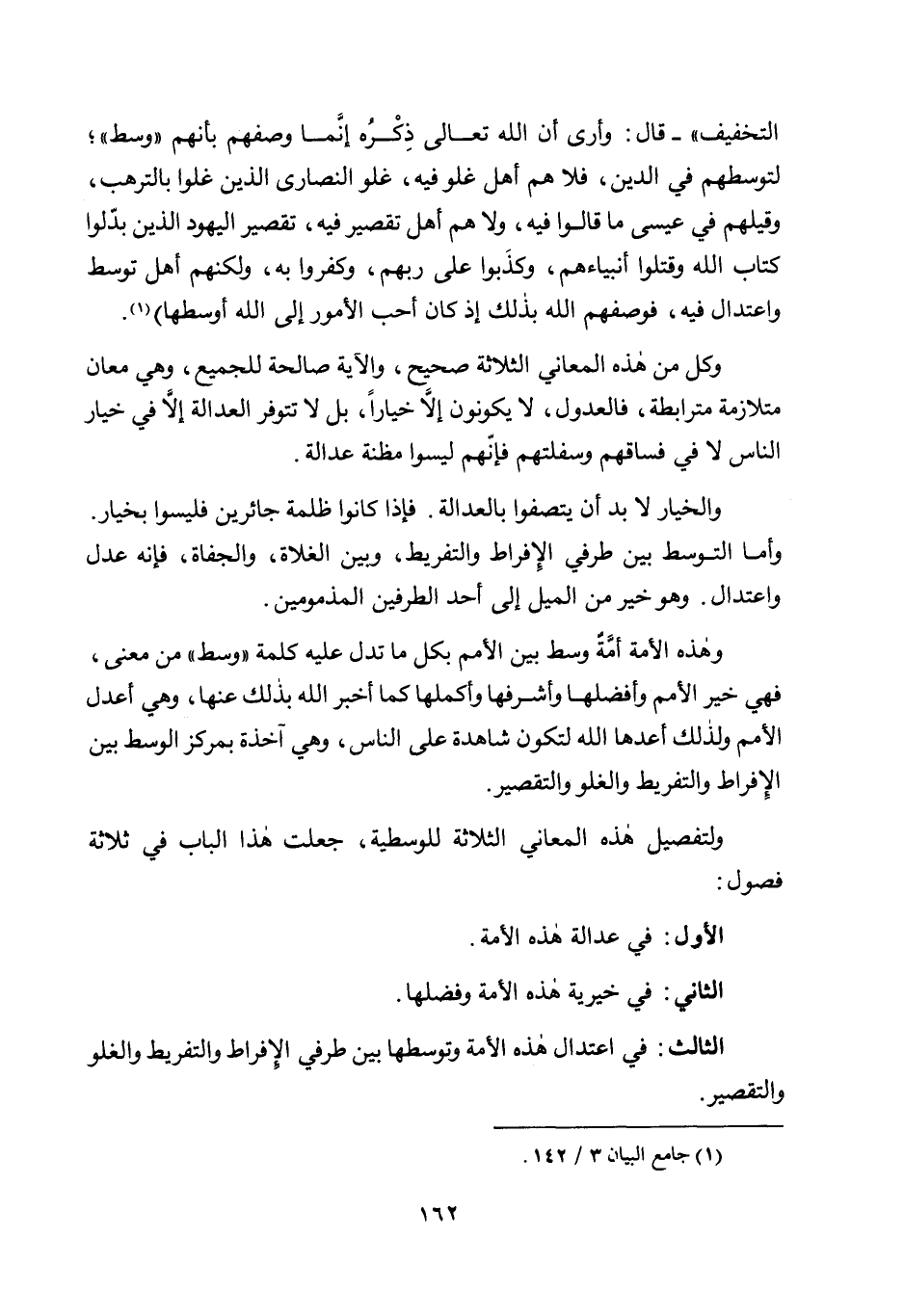 ولتفصيل هذه المعاني الثلاثة للوسطية، جعلت هذا الباب في ثلاثة فصول: