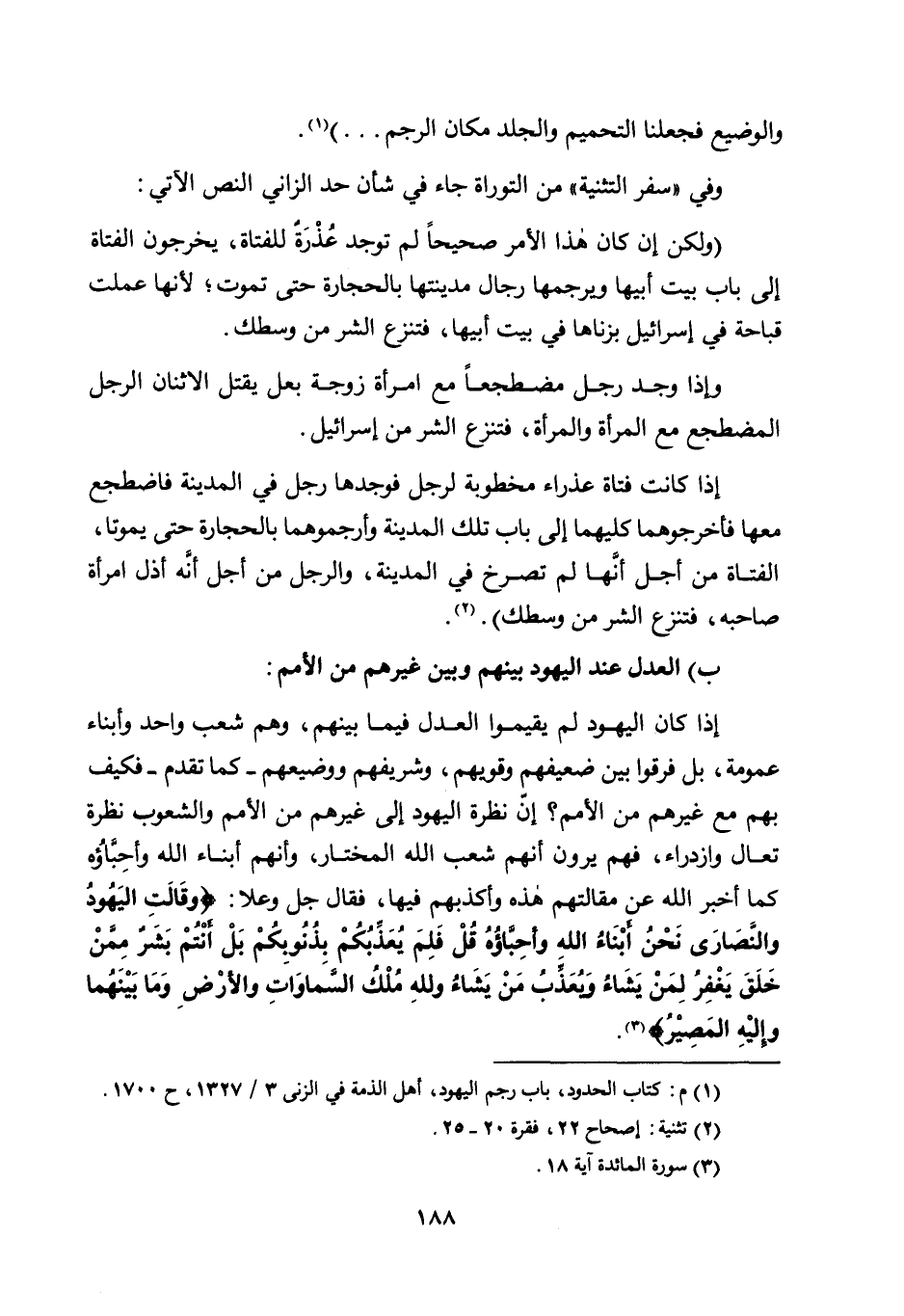 1 م: كتاب الحدود، باب رجم اليهود، أهل الذمة في الزنى 3/ 1327، ح 1700.