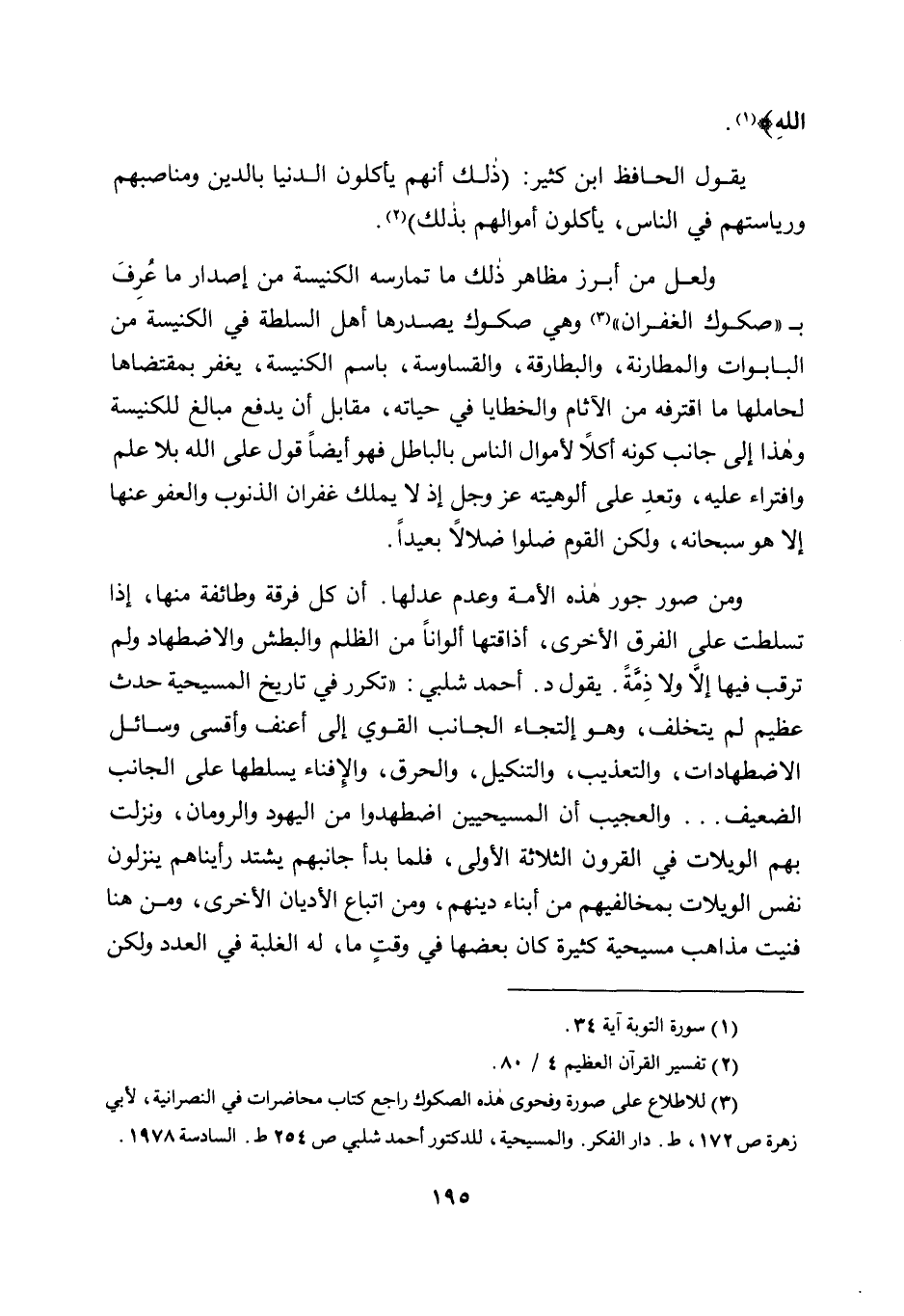 3 للاطلاع على صورة وفحوى هذه الصكوك راجع كتاب محاضرات في النصرانية، لأبي زهرة ص 172، ط. دار الفكر. والمسيحية، للدكتور أحمد شلبي ص 254 ط. السادسة 1978.