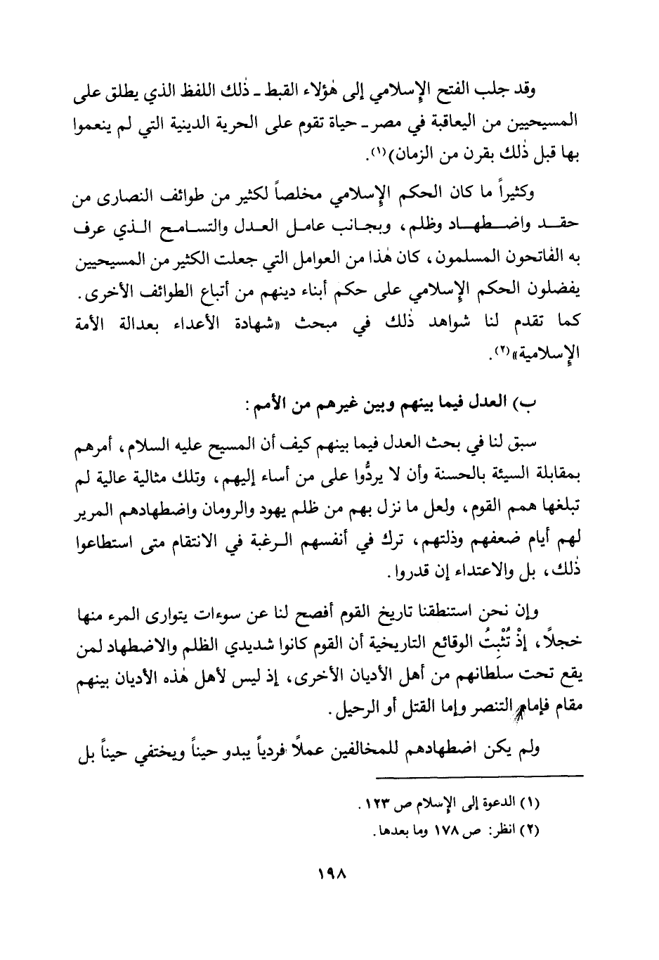 وقد جلب الفتح الإسلامي إلى هؤلاء القبط -ذلك اللفظ الذي يطلق على المسيحيين من اليعاقبة في مصر- حياة تقوم على الحرية الدينية التي لم ينعموا بها قبل ذلك بقرن من الزمان"1.