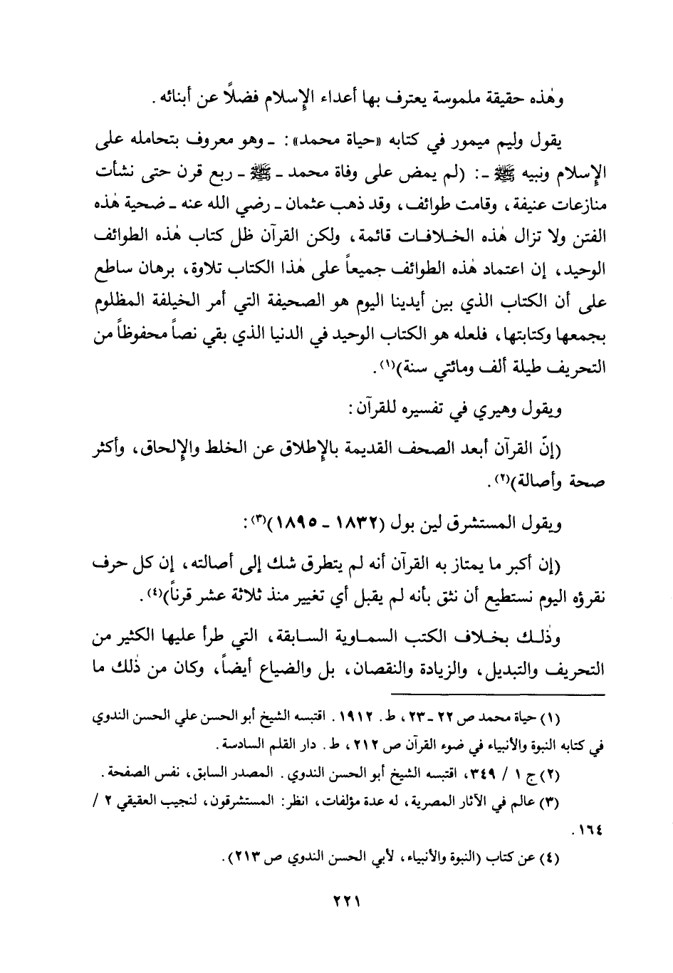 1 حياة محمد ص22- 23، ط. 1912. اقتبسه الشيخ أبو الحسن علي الحسن الندوي في كتابه النبوة والأنبياء في ضوء القرآن ص212، ط. دار القلم السادسة.