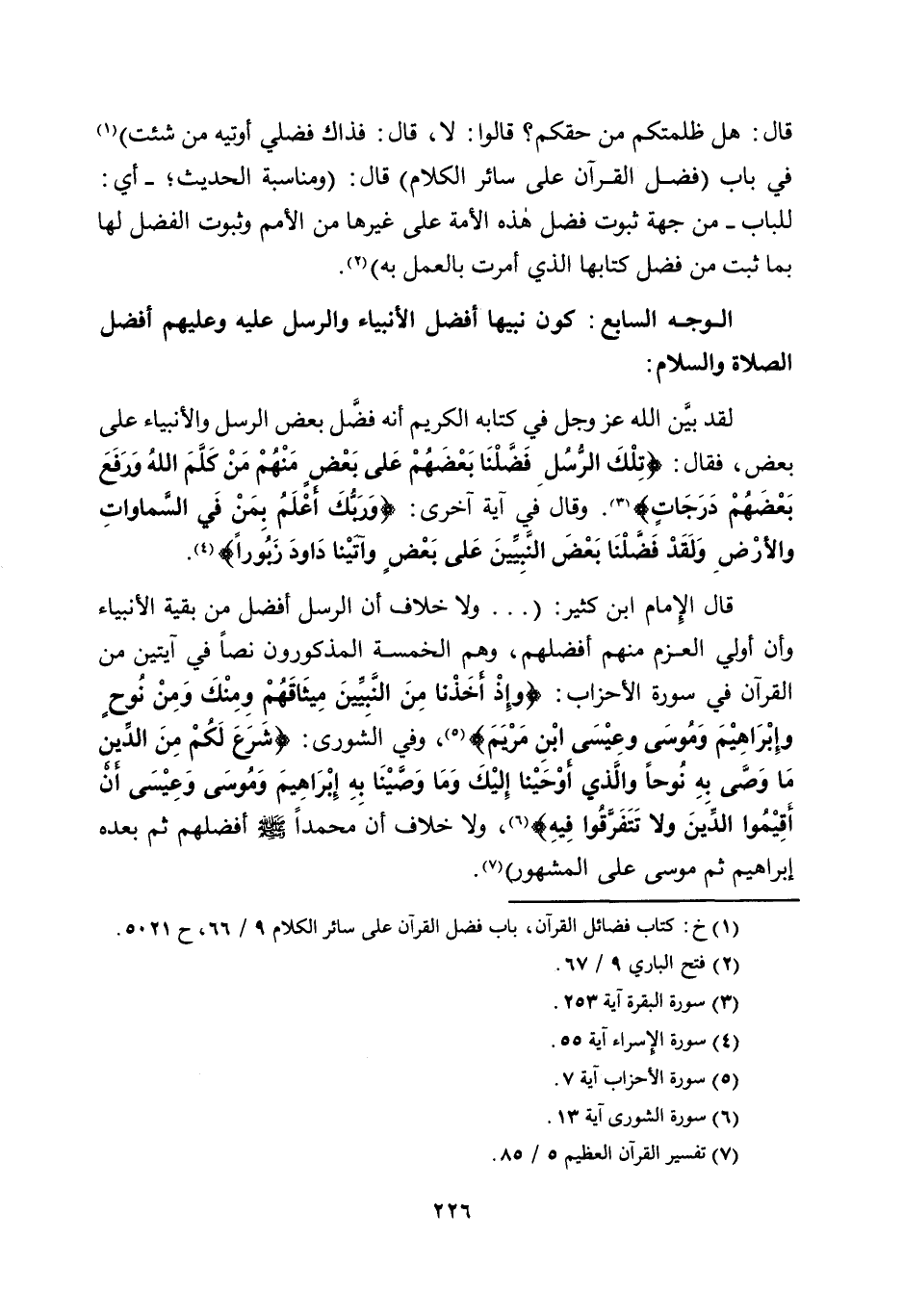 لقد بين الله عز وجل في كتابه الكريم أنه فضل بعض الرسل والأنبياء على بعض؛ فقال: {تِلْكَ الرُّسُلُ فَضَّلْنَا بَعْضَهُمْ عَلَى بَعْضٍ مِنْهُمْ مَنْ كَلَّمَ اللَّهُ وَرَفَعَ بَعْضَهُمْ دَرَجَاتٍ} 1، وقال في آية أخرى: {وَرَبُّكَ أَعْلَمُ بِمَنْ فِي السَّمَاوَاتِ وَالْأَرْضِ وَلَقَدْ فَضَّلْنَا بَعْضَ النَّبِيِّينَ عَلَى بَعْضٍ وَآتَيْنَا دَاوُدَ زَبُورًا} 2.