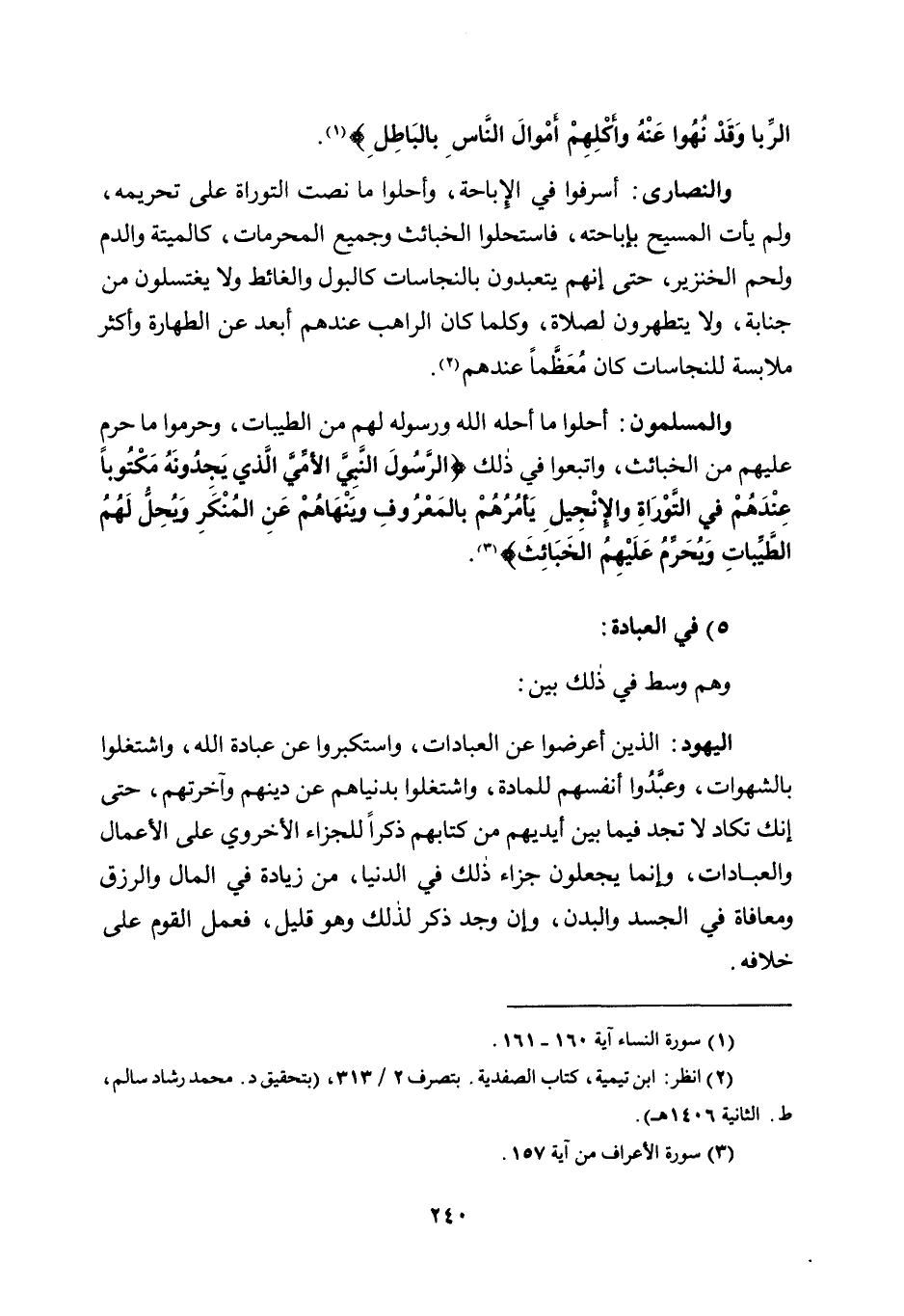 2 انظر: ابن تيمية، كتاب الصفدية، بتصرف 2/ 313، "بتحقيق د. محمد رشاد سالم، ط. الثانية 1406 هـ".