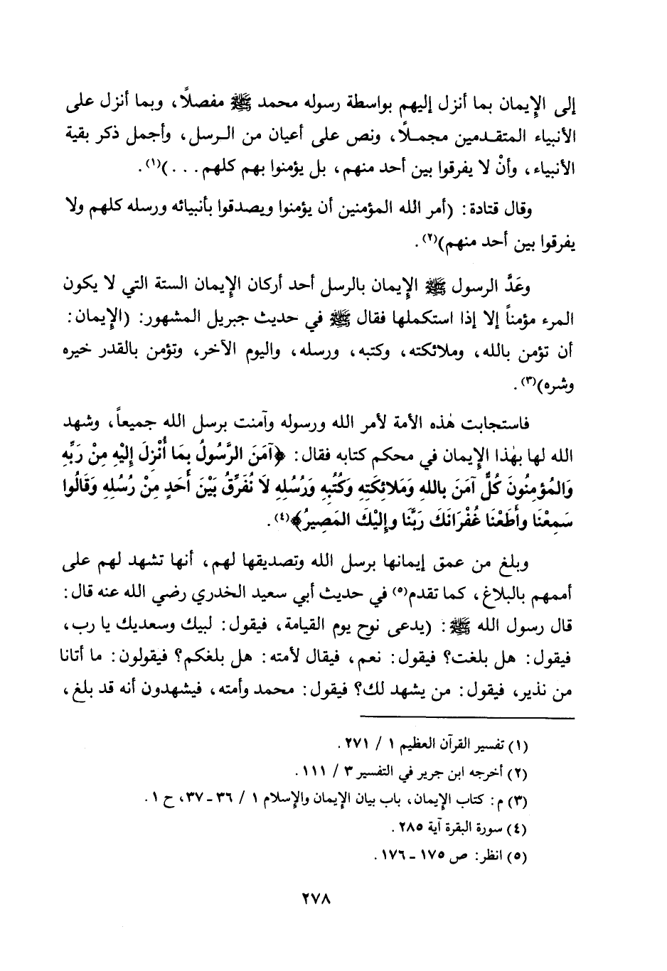 فاستجابت هذه الأمة لأمر الله ورسوله وآمنت برسل الله جميعًا، وشهد الله لها بهذا الإيمان في محكم كتابه فقال: {آمَنَ الرَّسُولُ بِمَا أُنْزِلَ إِلَيْهِ مِنْ رَبِّهِ وَالْمُؤْمِنُونَ كُلٌّ آمَنَ بِاللَّهِ وَمَلائِكَتِهِ وَكُتُبِهِ وَرُسُلِهِ لا نُفَرِّقُ بَيْنَ أَحَدٍ مِنْ رُسُلِهِ وَقَالُوا سَمِعْنَا وَأَطَعْنَا غُفْرَانَكَ رَبَّنَا وَإِلَيْكَ الْمَصِير} 4.