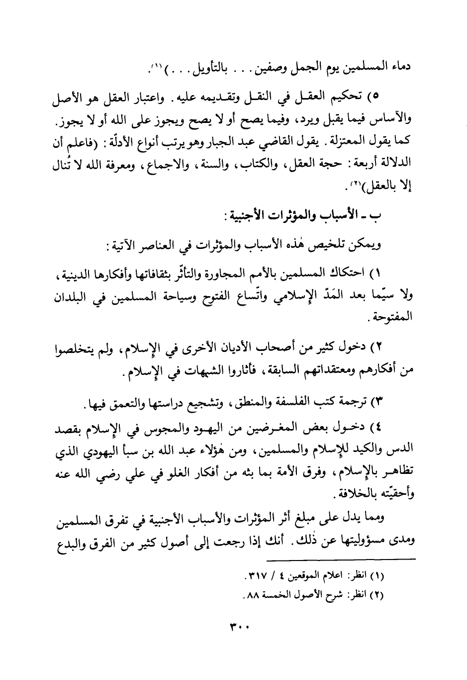 1- احتكاك المسلمين بالأمم المجاورة والتأثر بثقافاتها وأفكارها الدينية، ولا سيما بعد المد الإسلامي واتساع الفتوح وسياحة المسلمين في البلدان المفتوحة.