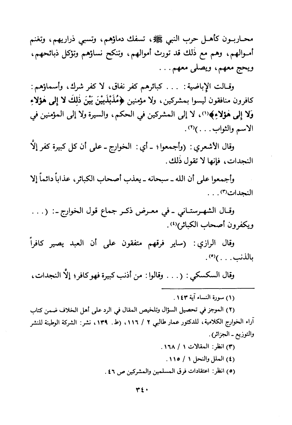 2 الموجز في تحصيل السؤال وتلخيص المقال في الرد على أهل الخلاف ضمن كتاب آراء الخوارج الكلامية، للدكتور عمار طالبي 2/ 116، "ط. 139، نشر: الشركة الوطنية للنشر والتوزيع - الجزائر".